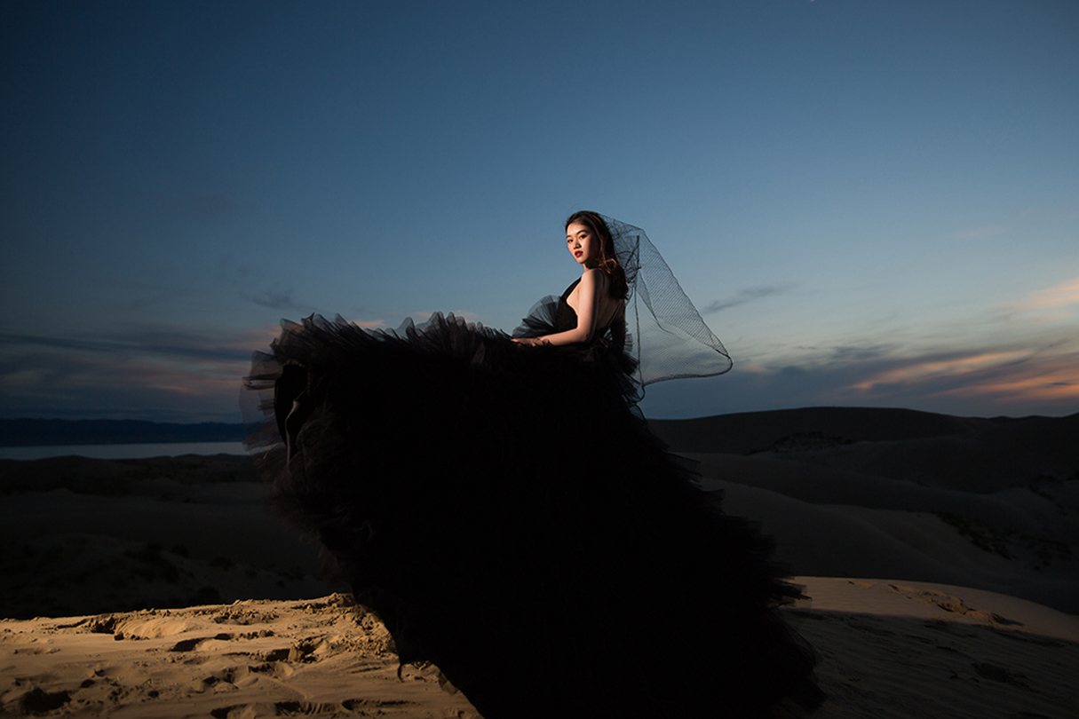 长沙天鹅婚纱礼服 黑色气质吊带显瘦婚纱敬酒服