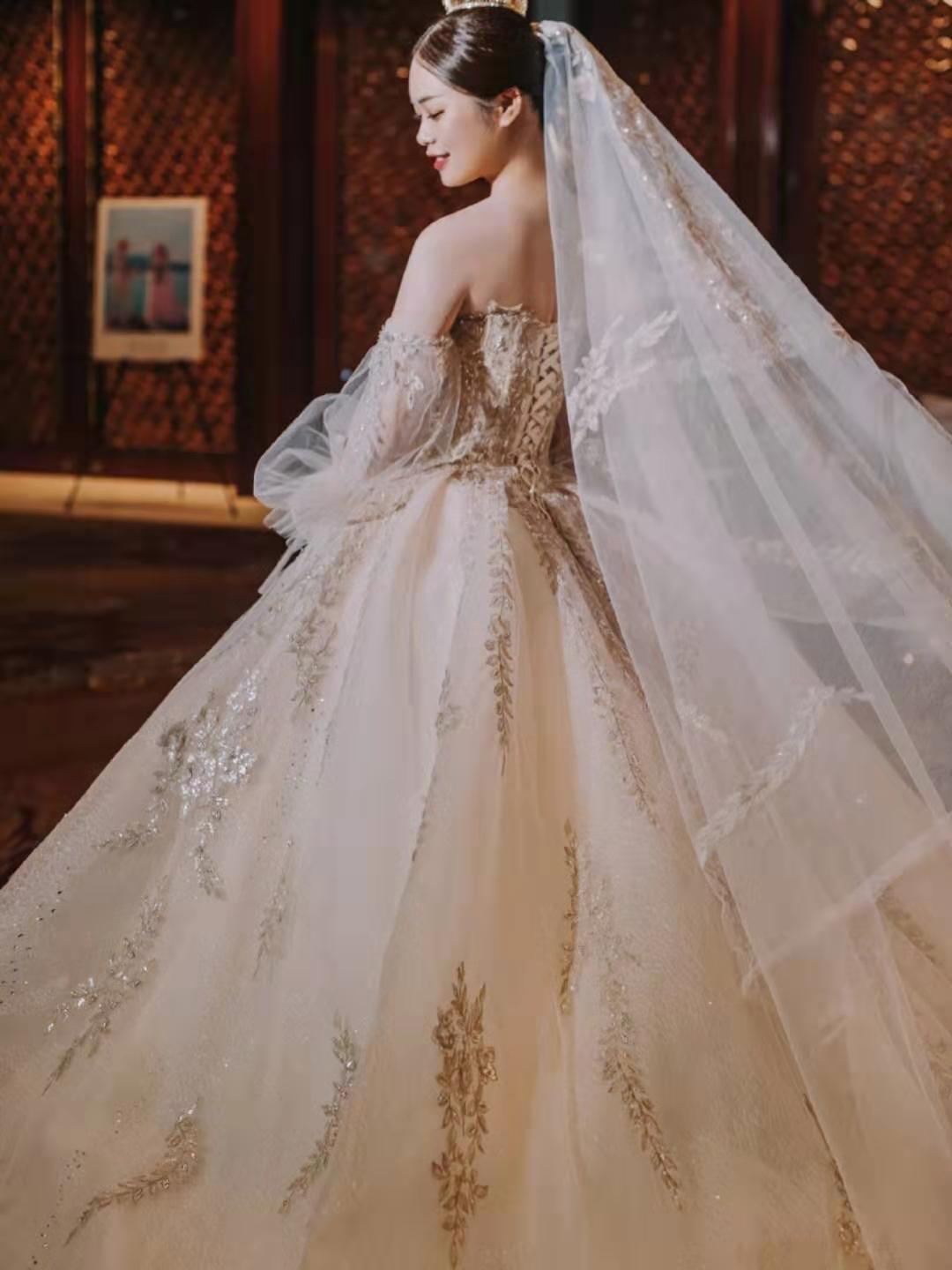【大囍】 换季特惠!高定重手工清新婚纱六件套