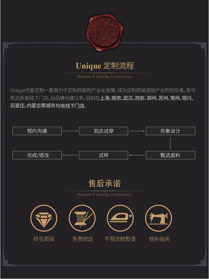 unique优客男仕西服西装定制