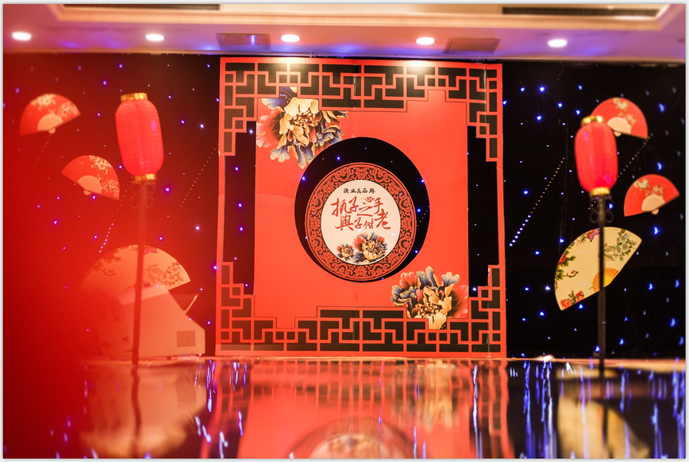 1、浪漫星空布背景 2、舞台副背景两个 3、背景主题logo定制 4、舞台花艺装饰 5、舞台灯光装饰 7、幸福亭一座 8、T台搭建 9、T台地毯装饰 10、主题路引