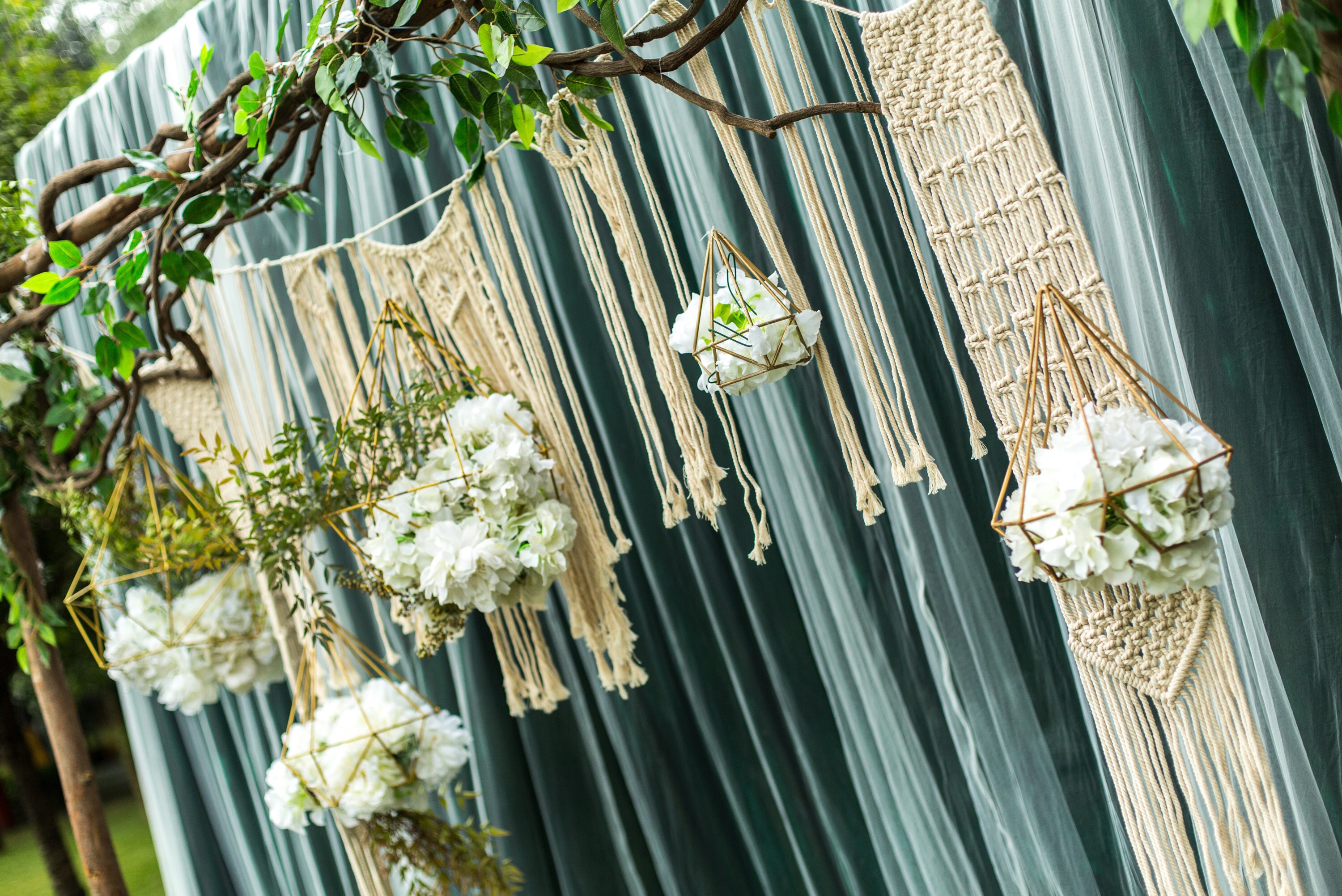 迎宾区由冰绸纱幔和绢花设计搭建,最大尺寸为2米乘以3.5米
