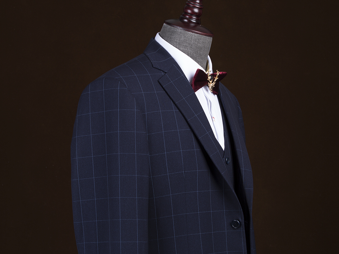 【超值特惠】灰色经典暗格纹全羊毛定制西服三件套
