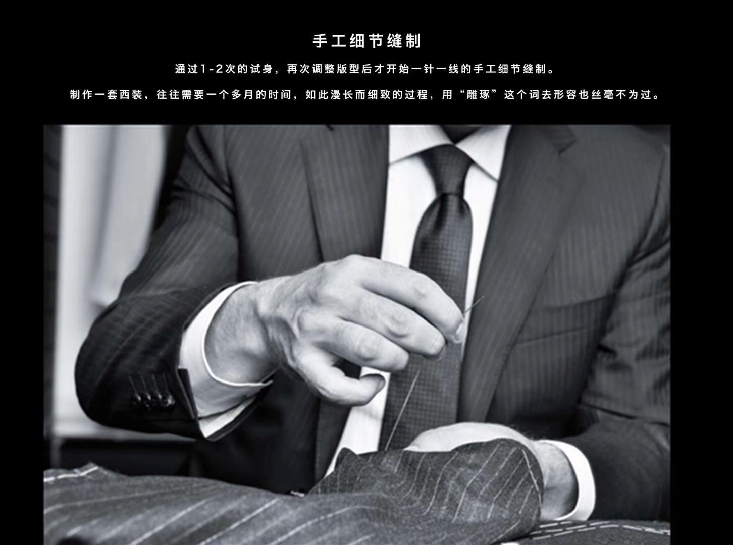 一款好西装应该是款式符合时代,面料挺括柔软,做工考究精细,并使三完美结合