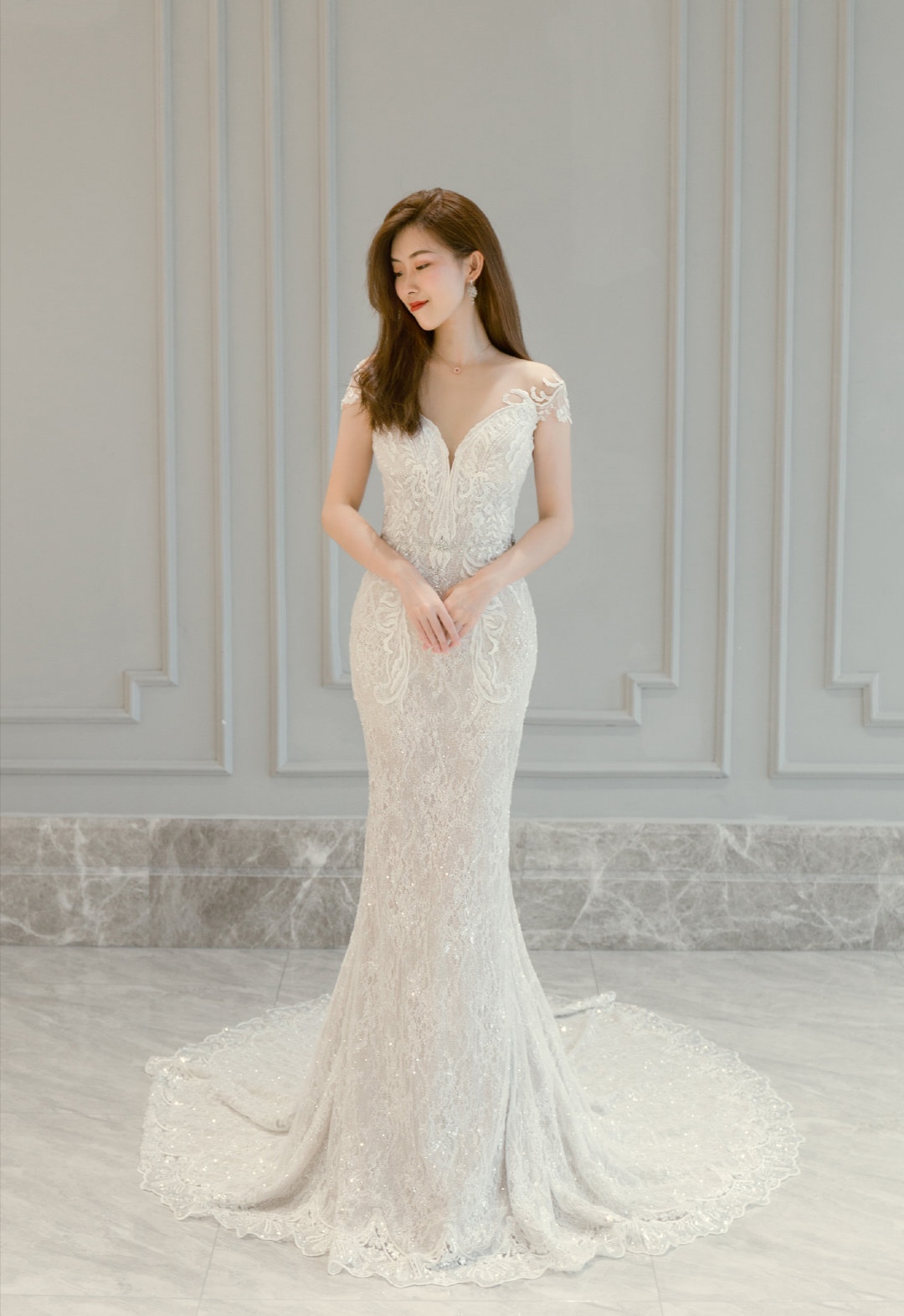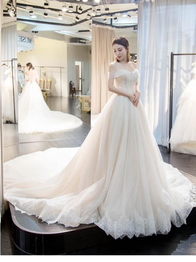 套餐亮点: 鱼尾、轻纱、一字肩 套餐内容: 1.价值3000元主纱一套 2.价值2000元秀禾或出门纱任选 3.价值500元头纱任选 4.赠送同系列伴娘服4件