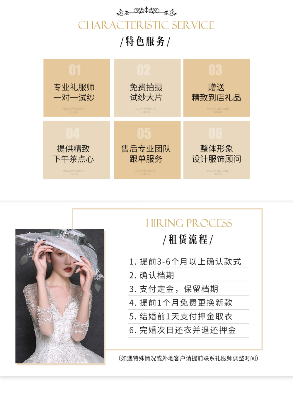 免费提供婚纱礼服量身修改服务 免清洗费 出租前均提供专业婚纱礼服清洁服务
