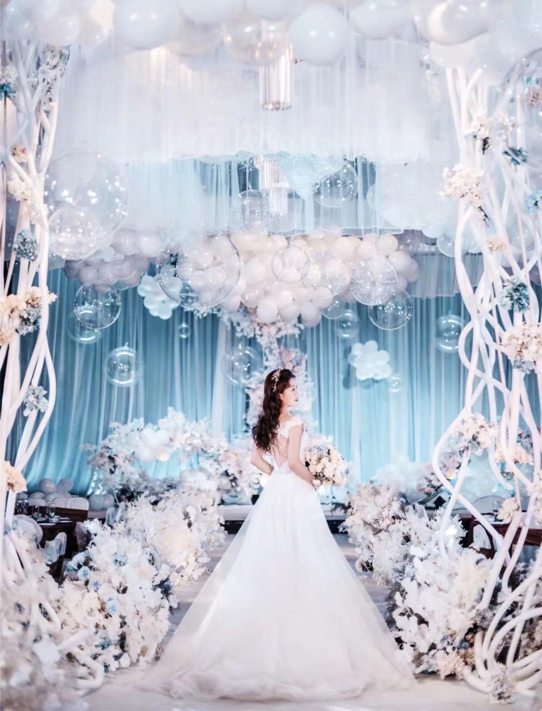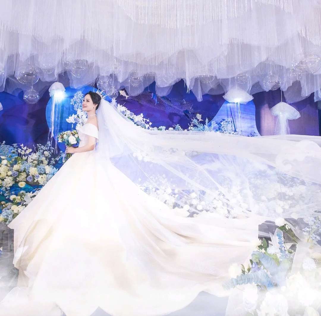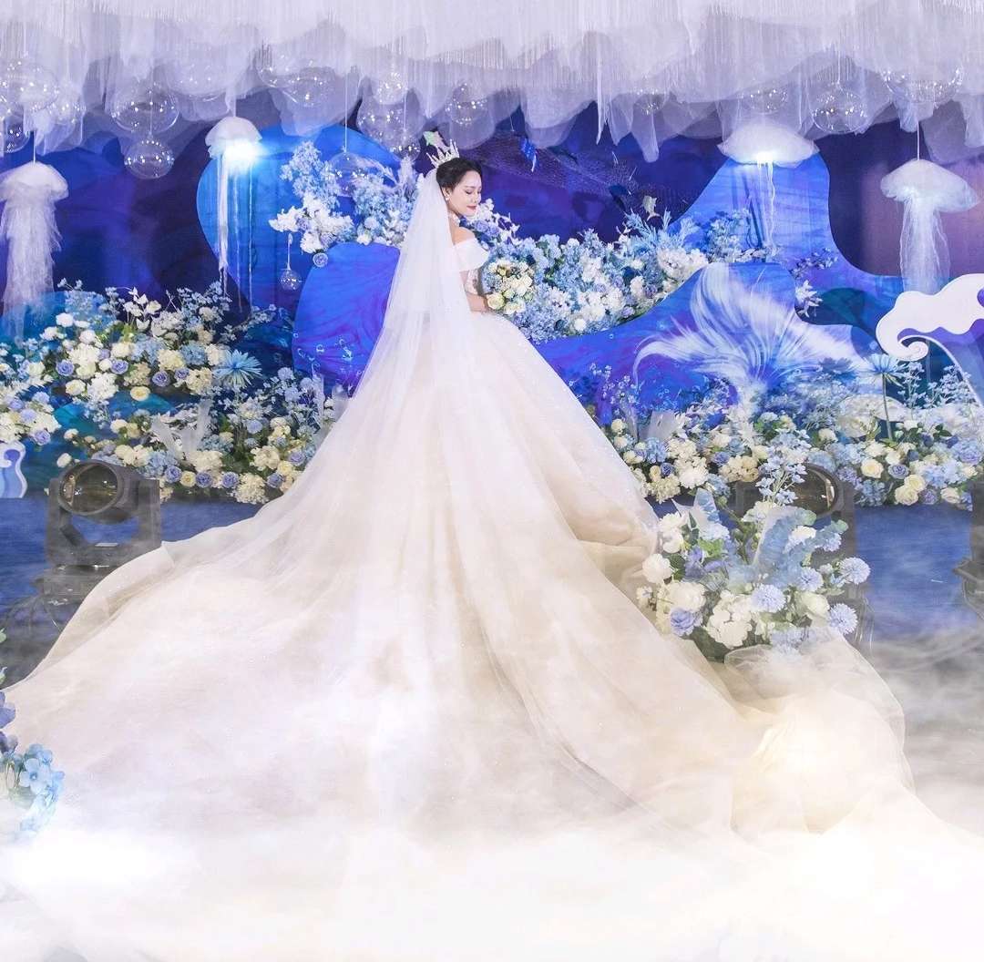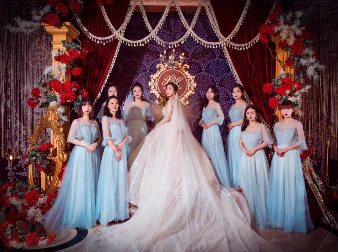蓝色梦幻婚纱礼服七件套