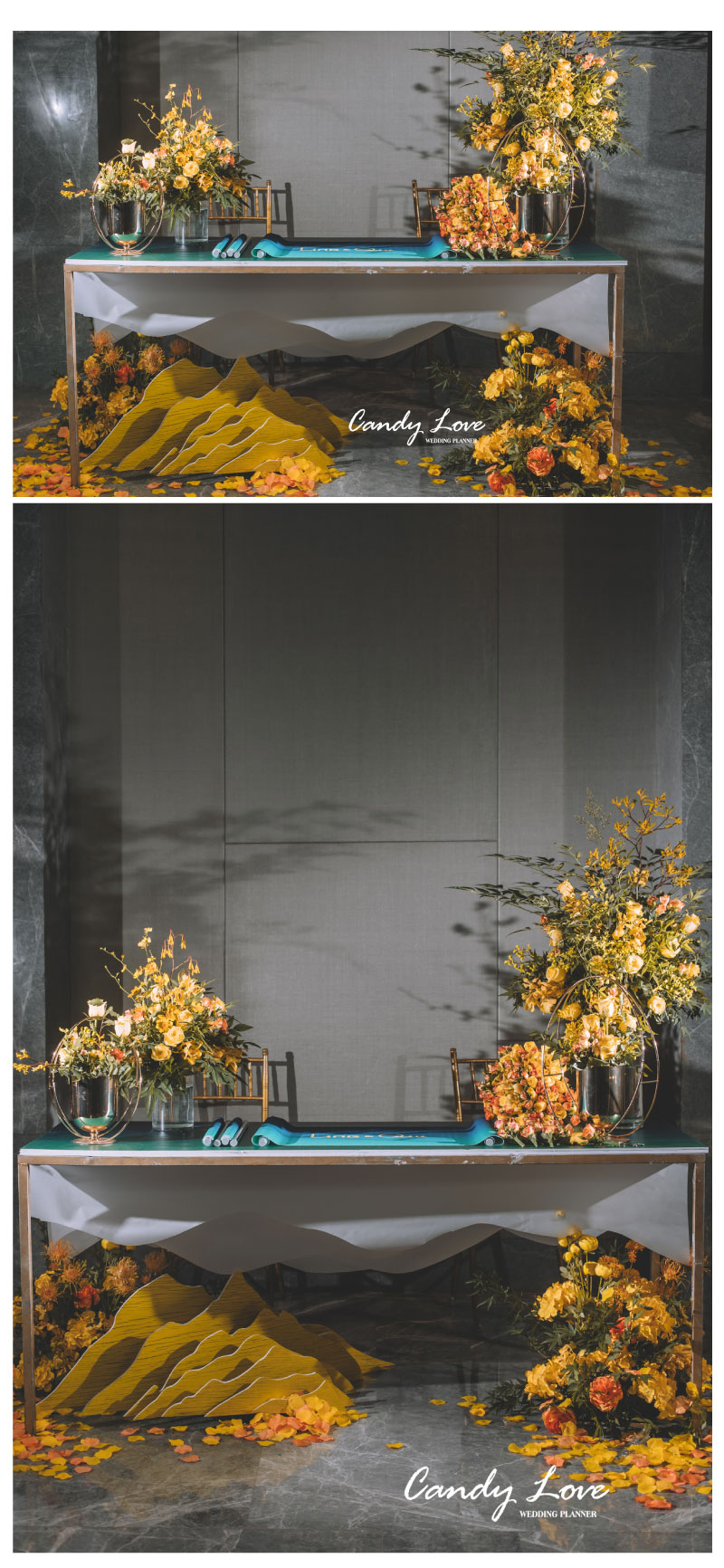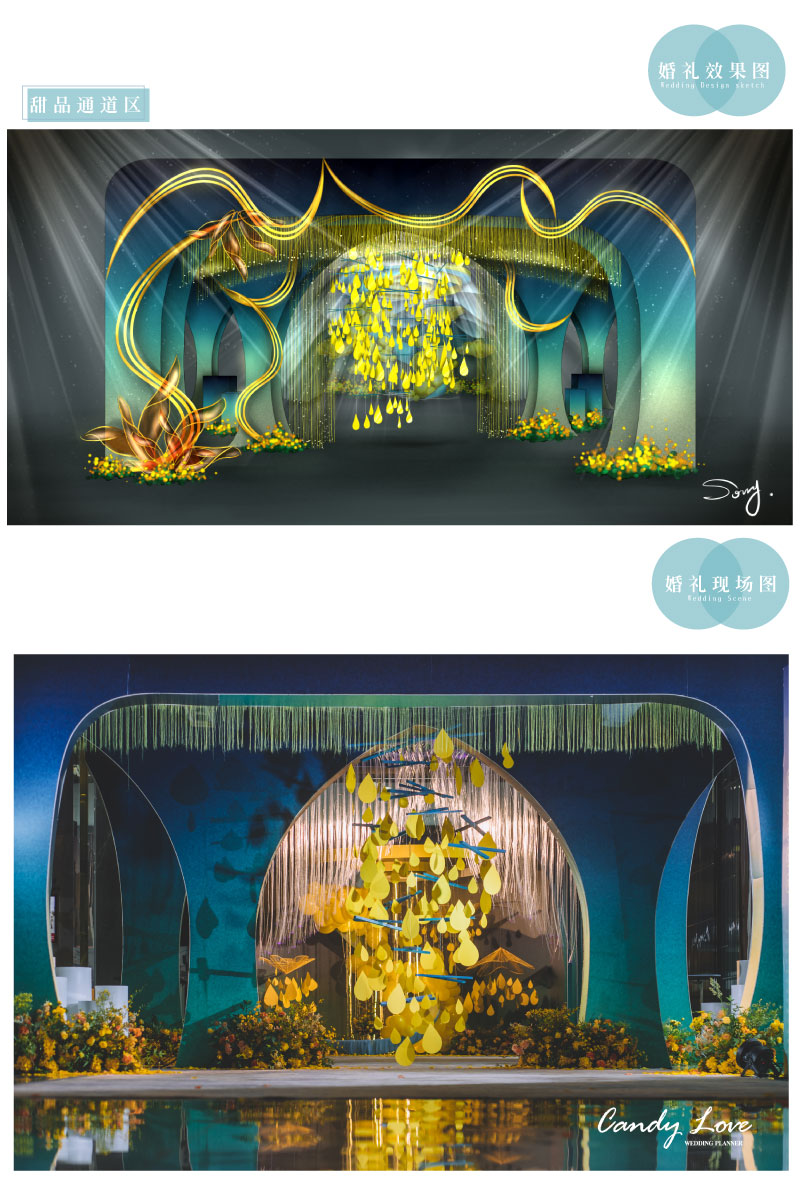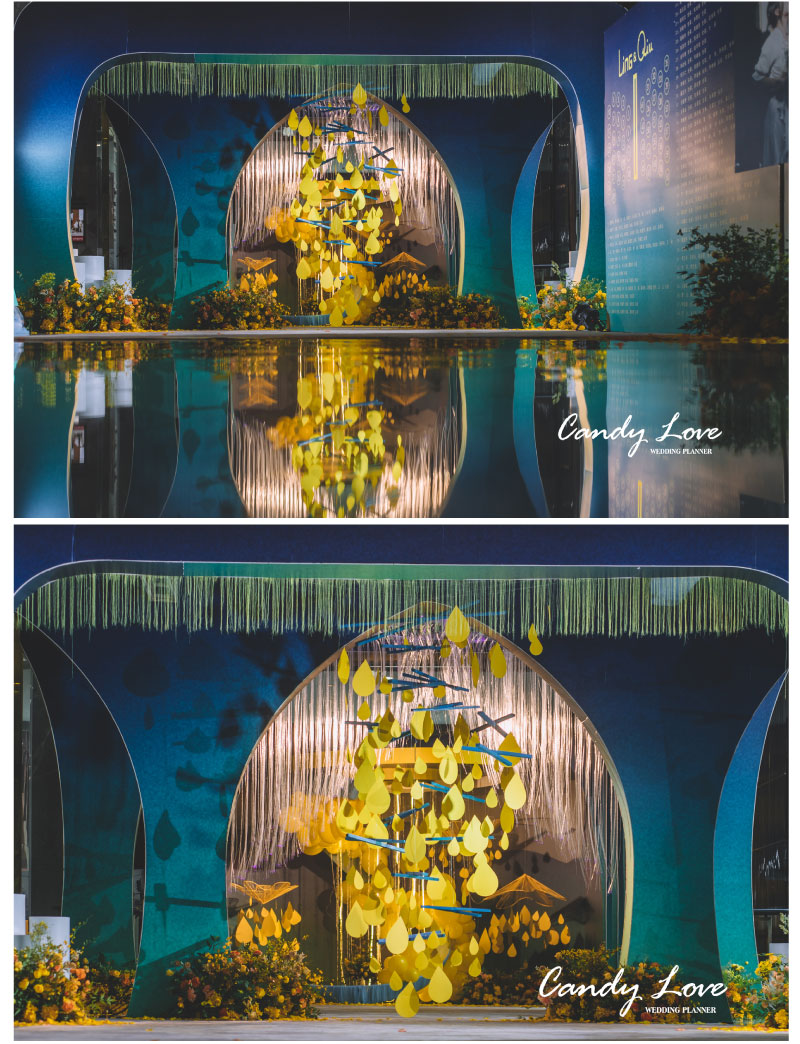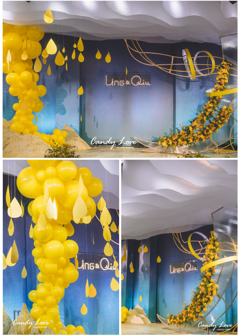 迎宾签到区:定制风格摆设道具 套餐内的方案构思、场地布置、喜好要求、报价明细等婚礼细节,我们都将为您专属定制,会根据每一对客人的喜好要求结合场地情况和预算做整体方案及报价。