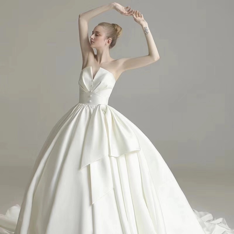 【本初婚纱】2019款贝壳香槟抹胸长拖尾