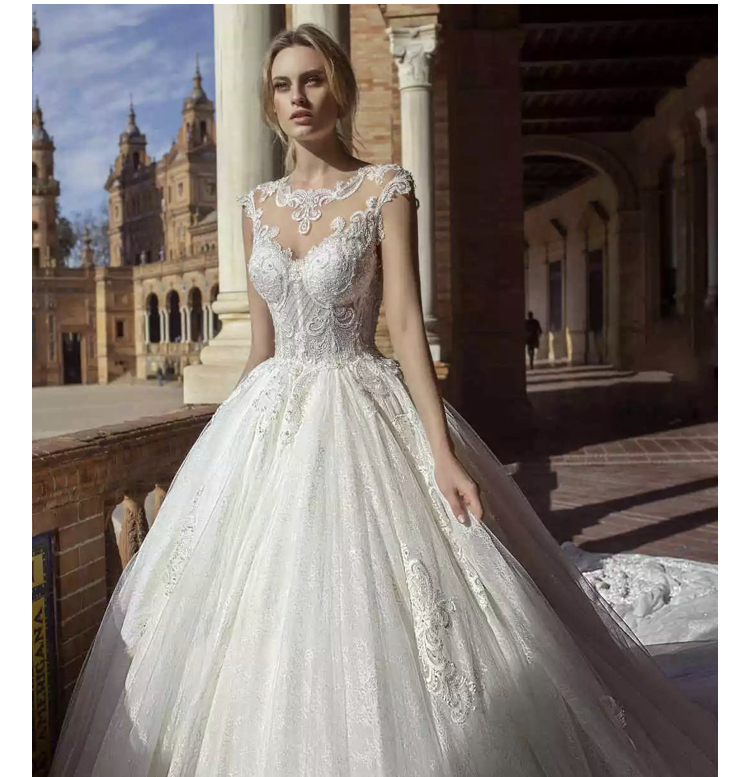 [唯誓婚纱] 南非进口羽毛花边拖尾主纱