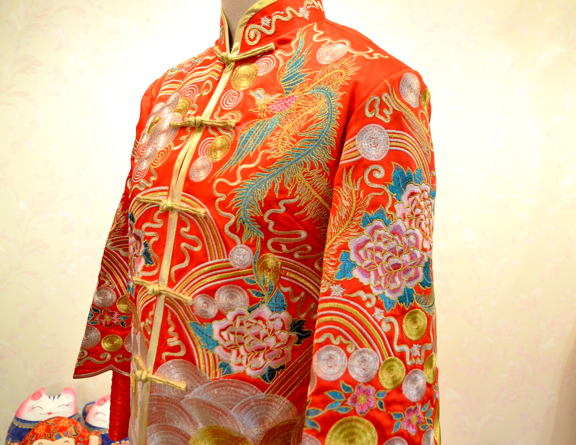 这款中式礼服刺绣精美,上身非常好看。蜜糖婚纱彩妆馆主宫:婚纱礼服租赁,婚礼跟妆等。 蜜糖所有照片均为店内实拍。
