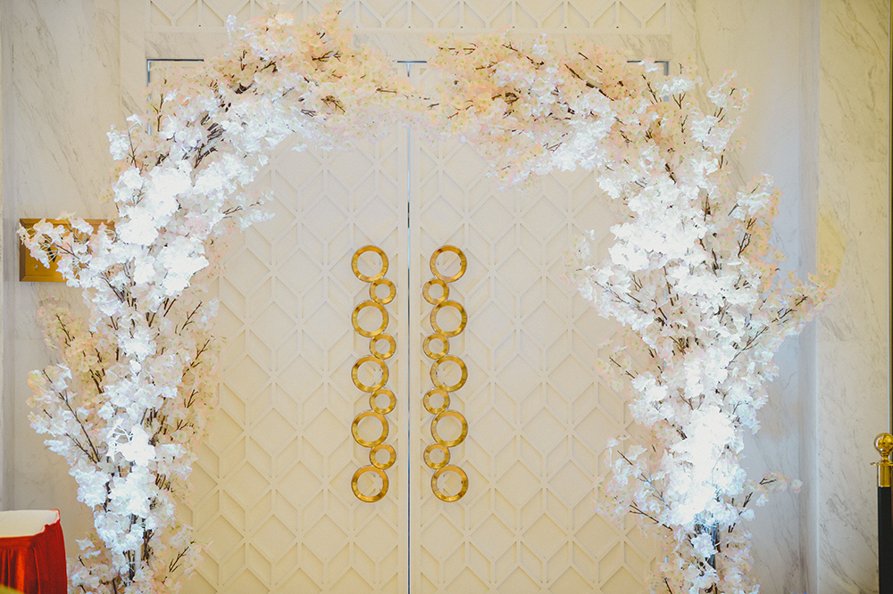 仪式区布置 1.通道T台12米 2.通道地毯15米 3.通道路引装饰X8