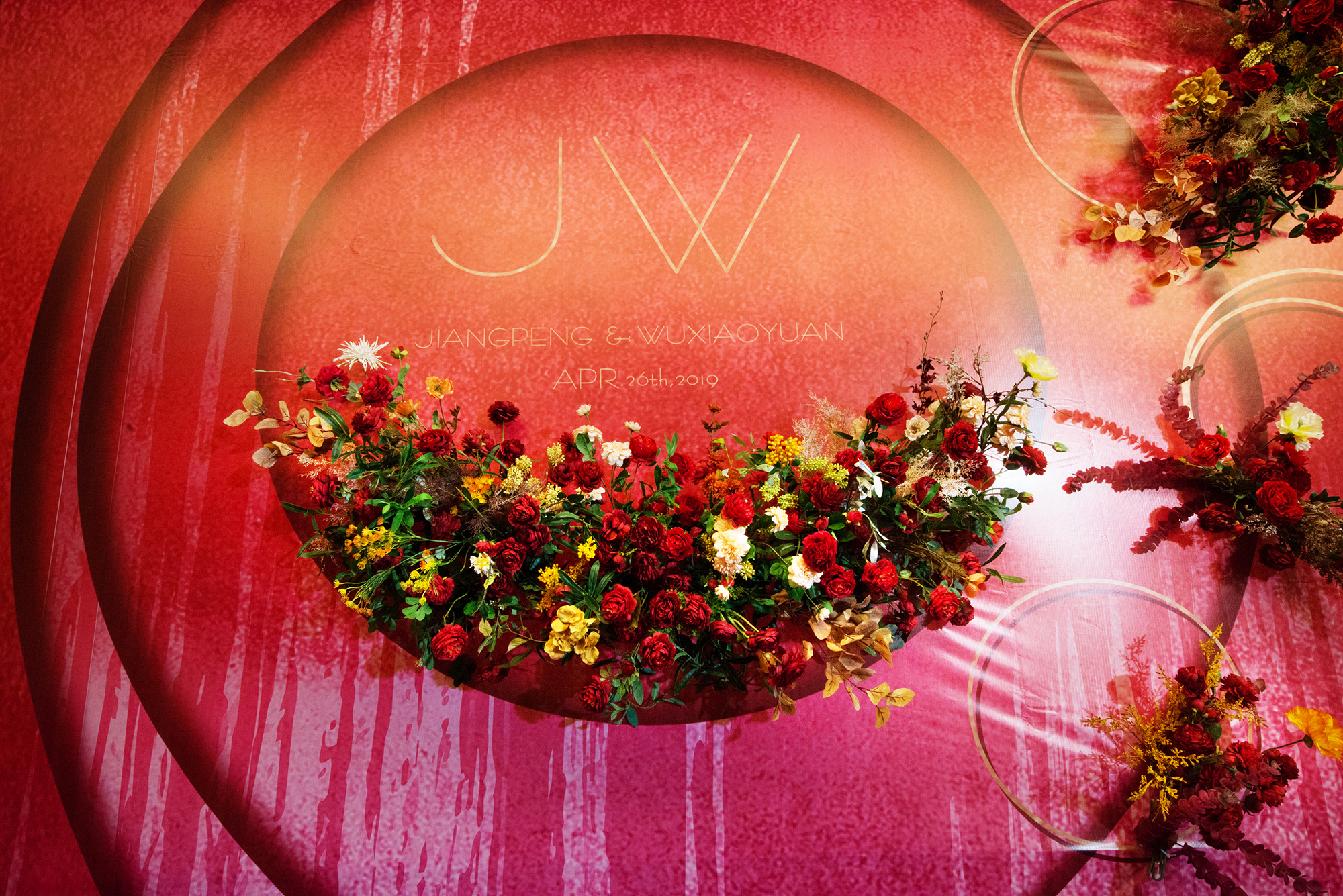 根据婚礼现场主色调设计主舞台整体布置