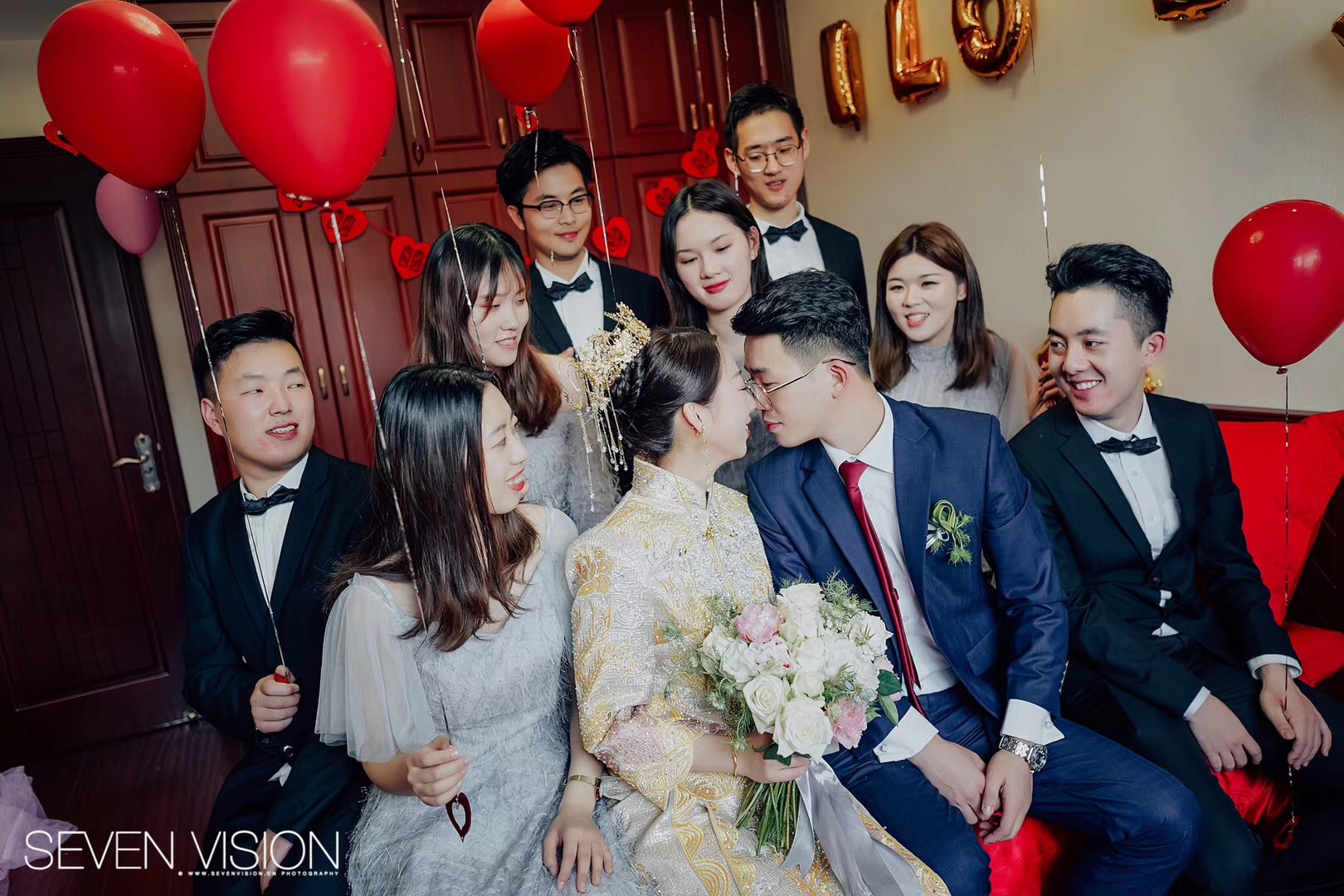 蓝色梦幻婚纱礼服七件套