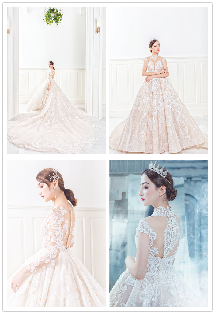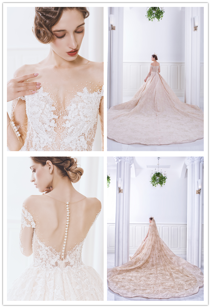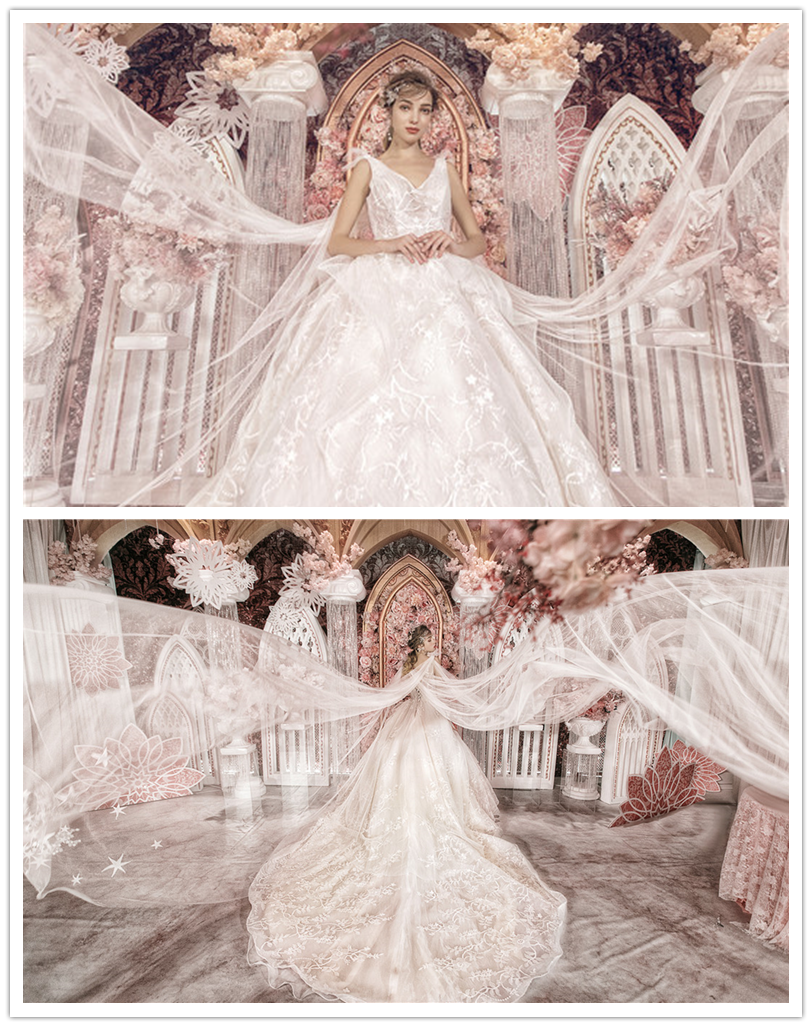【店长推荐】设计师高定大拖尾主纱4件套+伴娘服