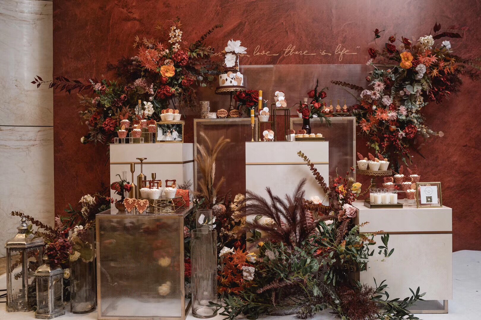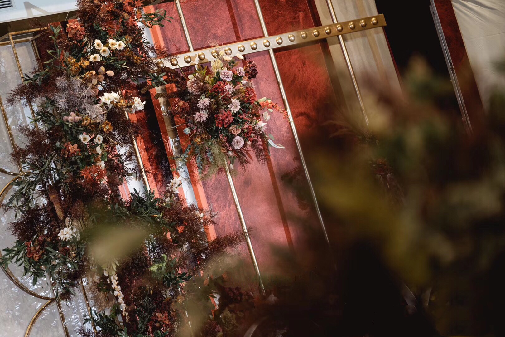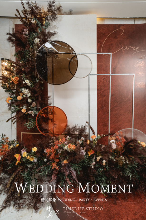 荔枝红色系现代简约室内婚礼