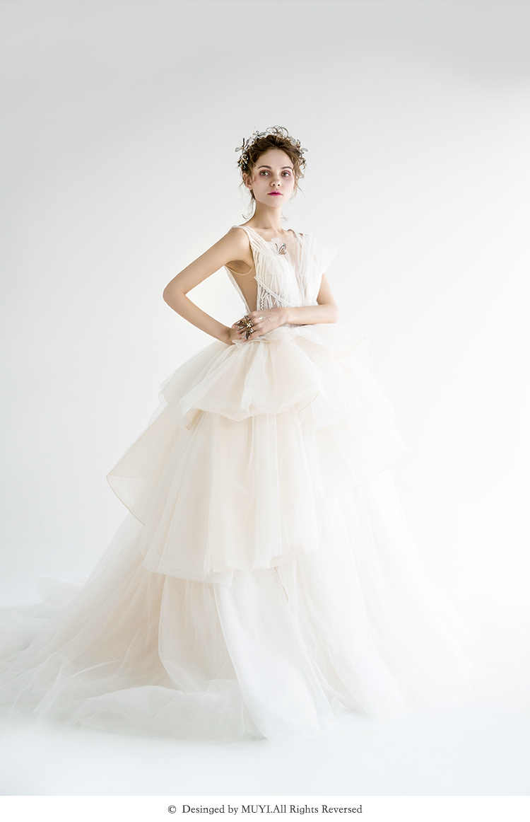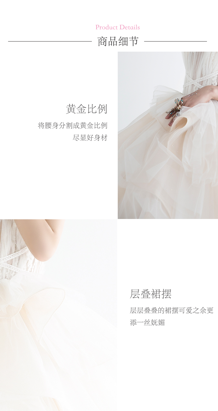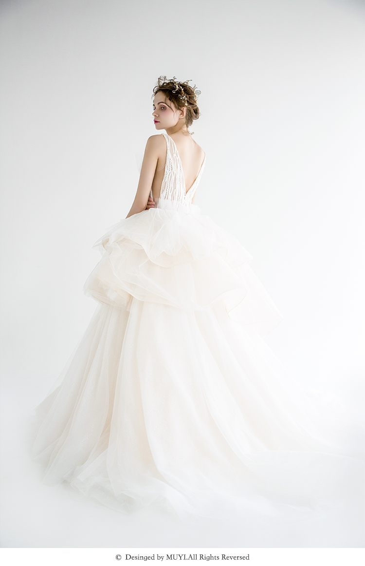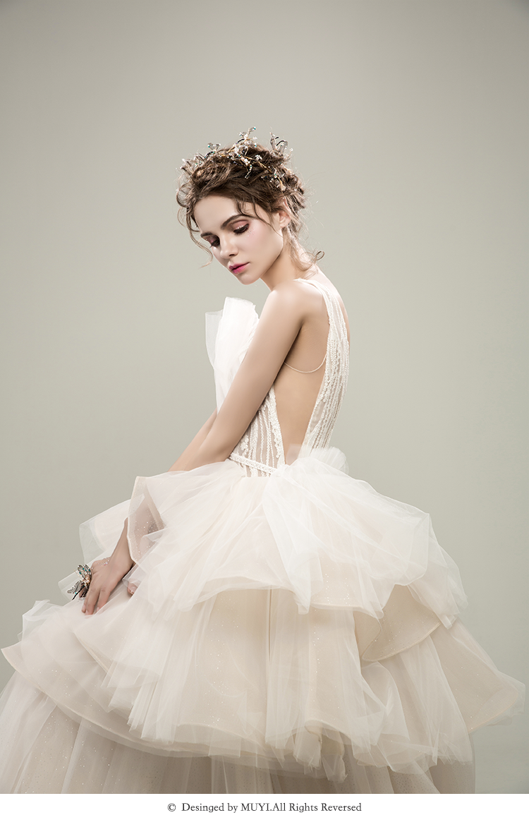 【VANSTAR】高腰小拖尾白色钉珠出门纱主纱纱