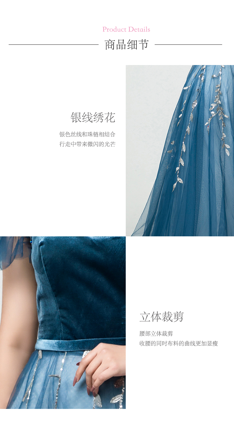 【VANSTAR】莫兰迪色蓝色不规则礼服敬酒服