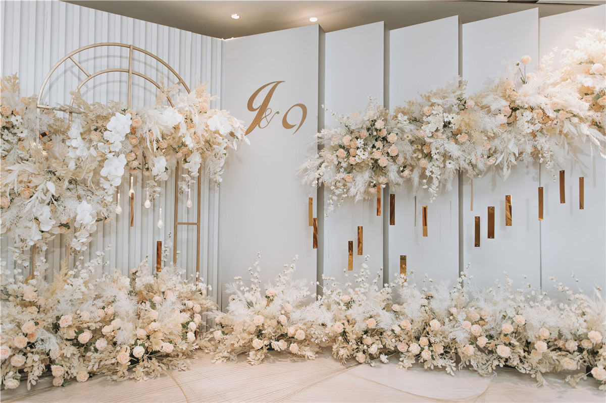 迎宾区道具装饰 1个;展示区道具装饰 1个;主桌花道具装饰 1个