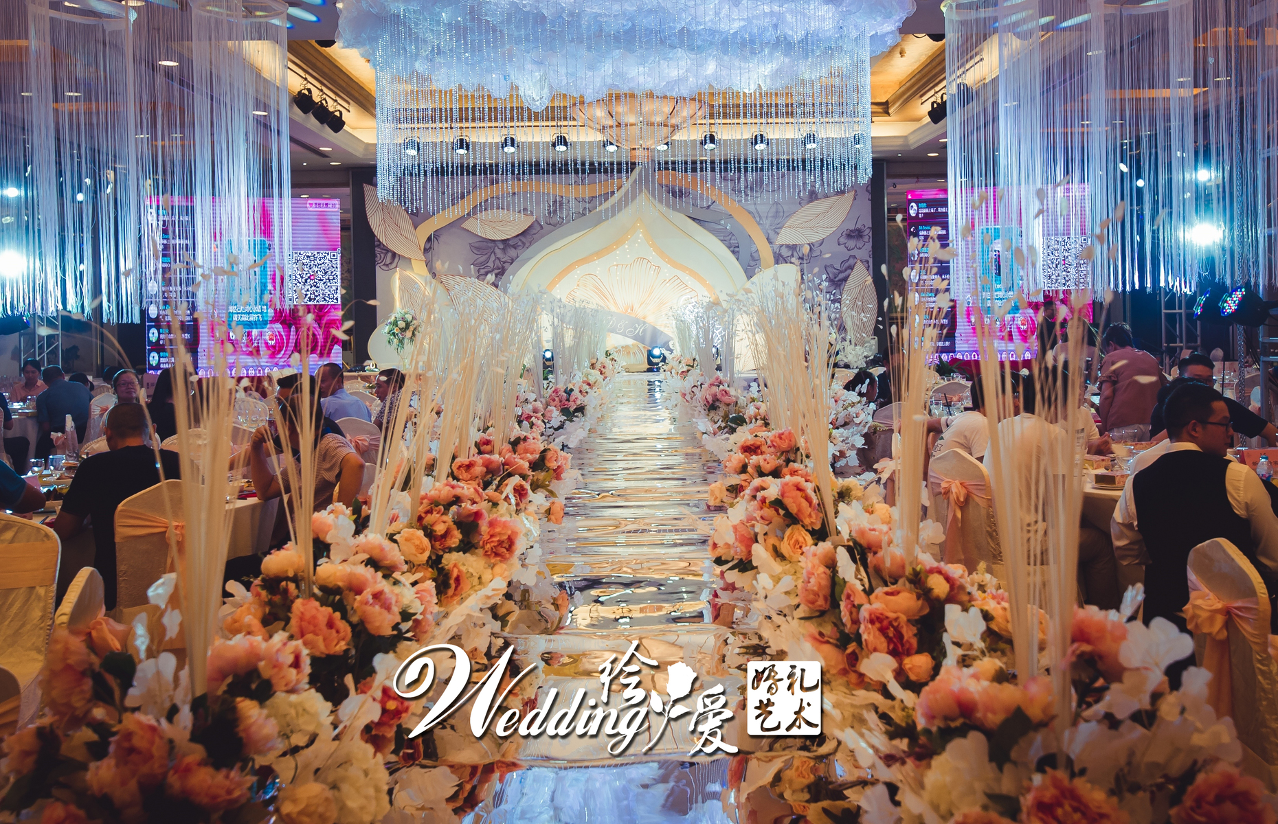 T台两侧绢花路引铺满+灯光路引