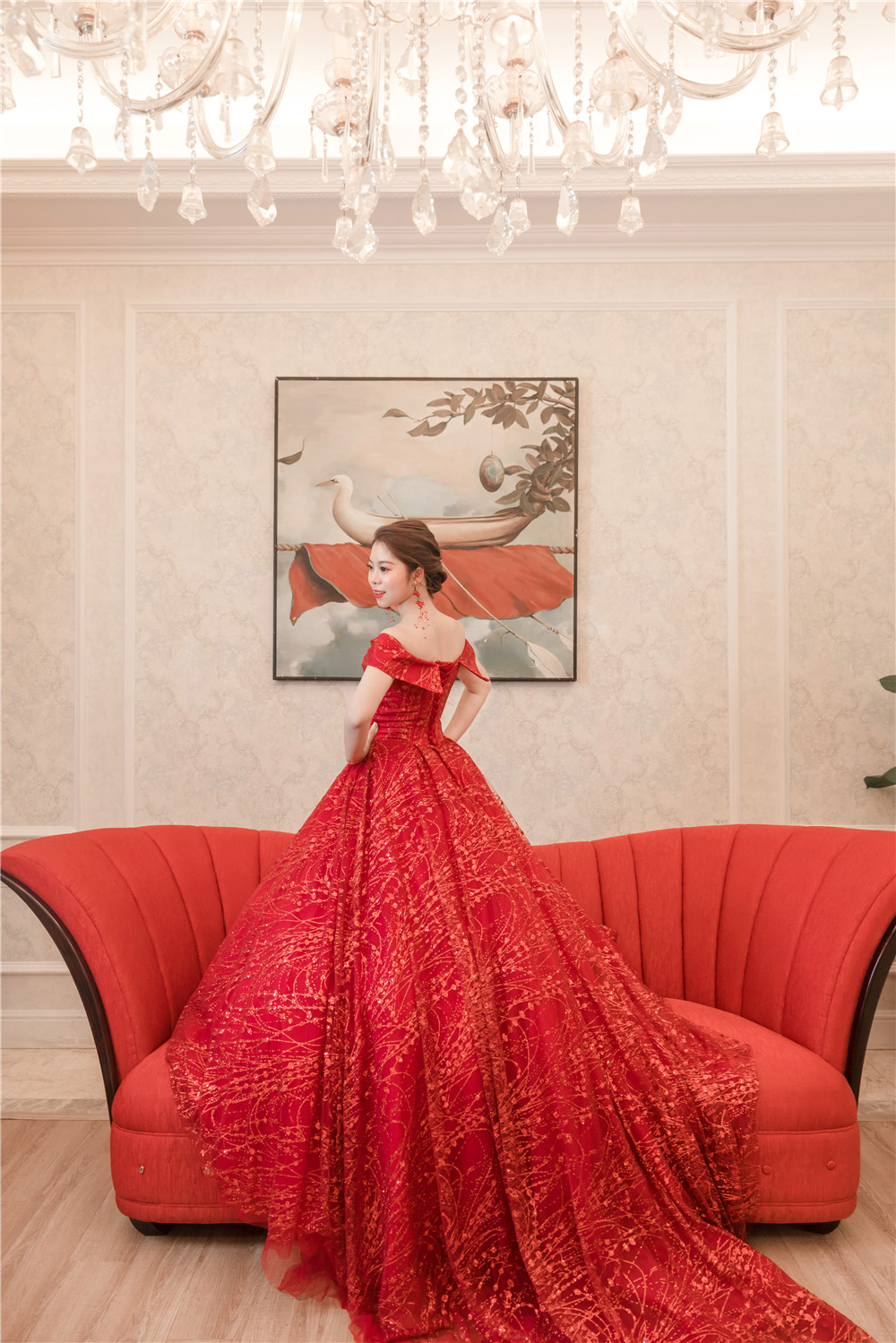 一字肩重工精致精美婚纱礼服