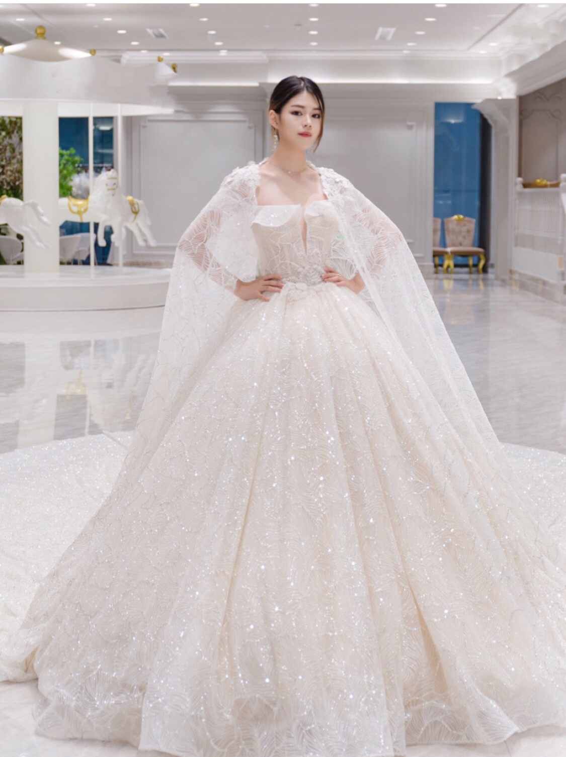 *~* 法式高定大拖尾1件 *~* 日韩清新齐地纱1件 *~* 日韩精致华丽敬酒服1件 *~* 赠送精美伴娘服2件 *~* 赠送头纱1个 *~* 赠送手套1双 *~*