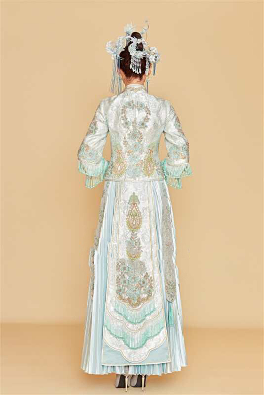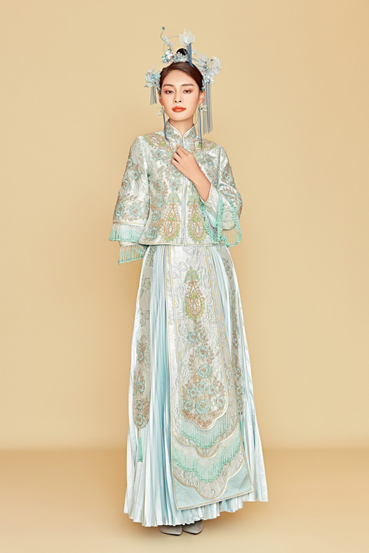 [圣柏莎]蓝色中式百褶秀禾服