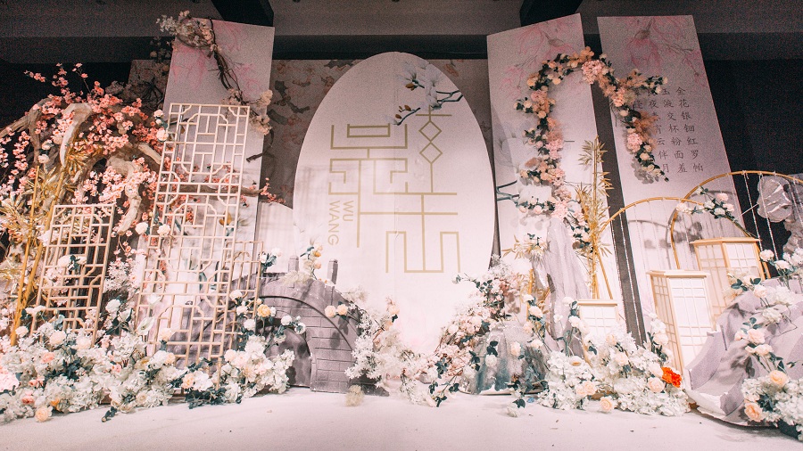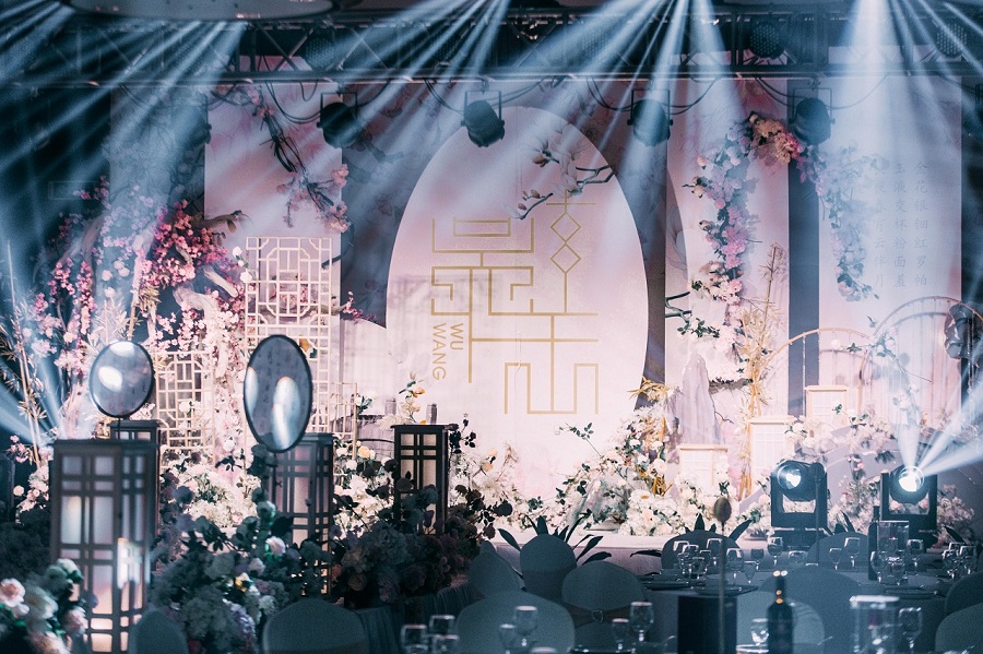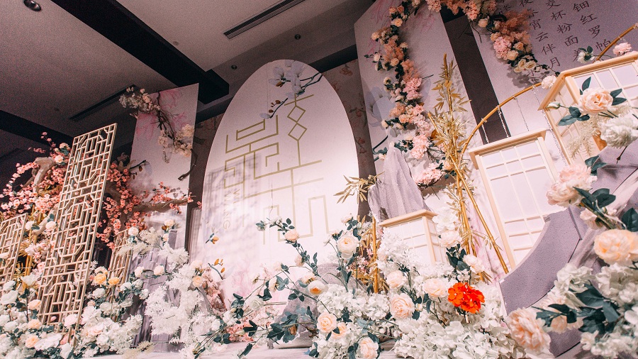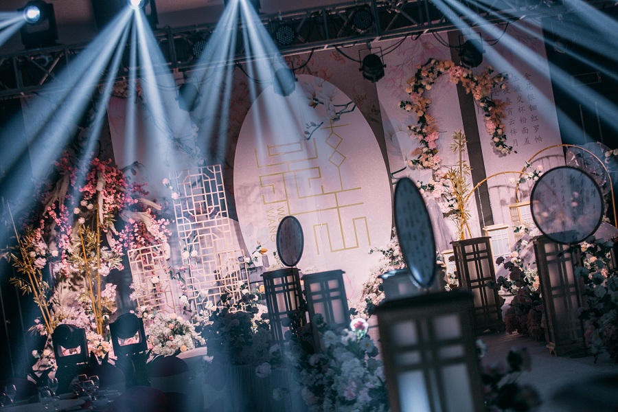 2、精美丝幔布置及布置装饰(根据婚礼主题设计搭配)