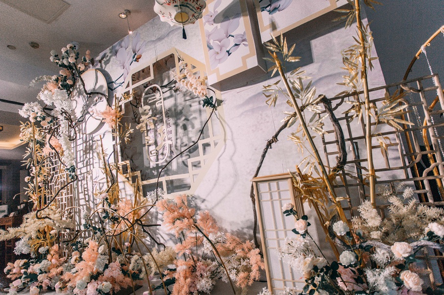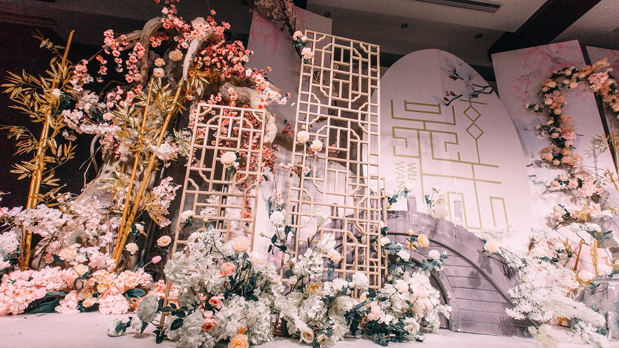 2、仪式交接精美绢花加鲜花装饰