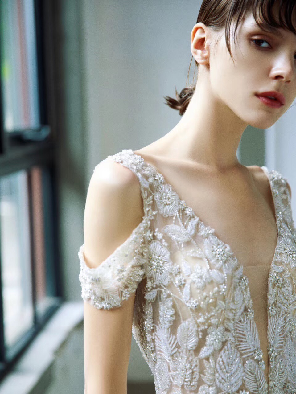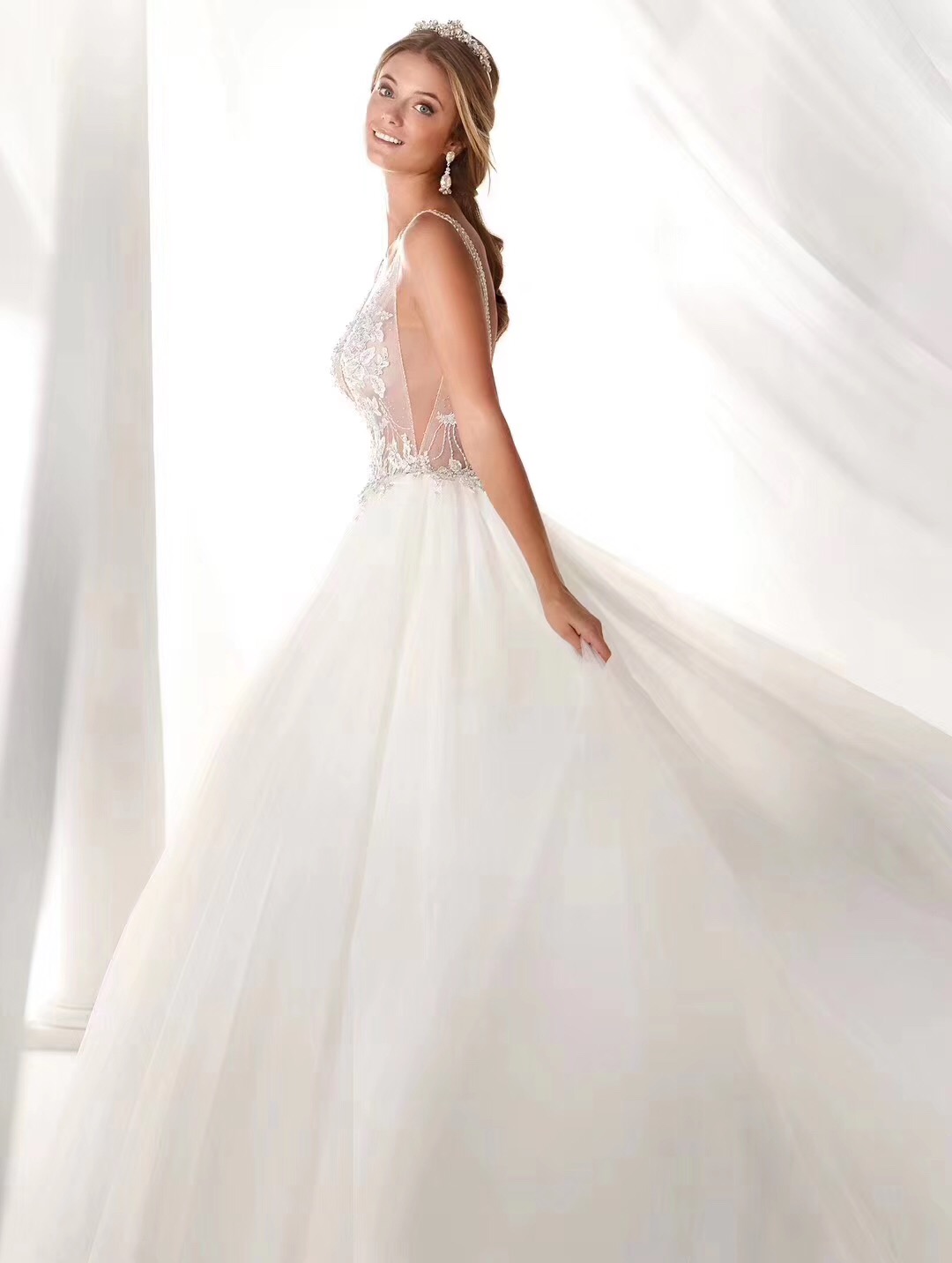 高定款婚纱礼服手工订珠奢华主纱