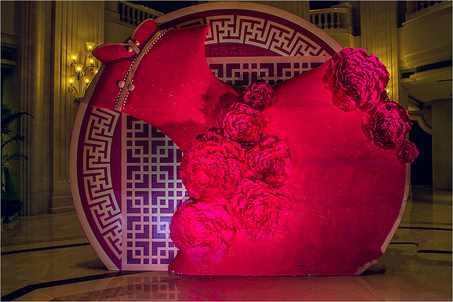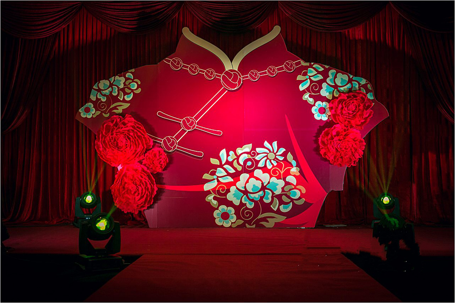 8、1、个性主题kt板舞台背景布置(12个平方以内。龙凤背景一套,对联一副,中国结一对)