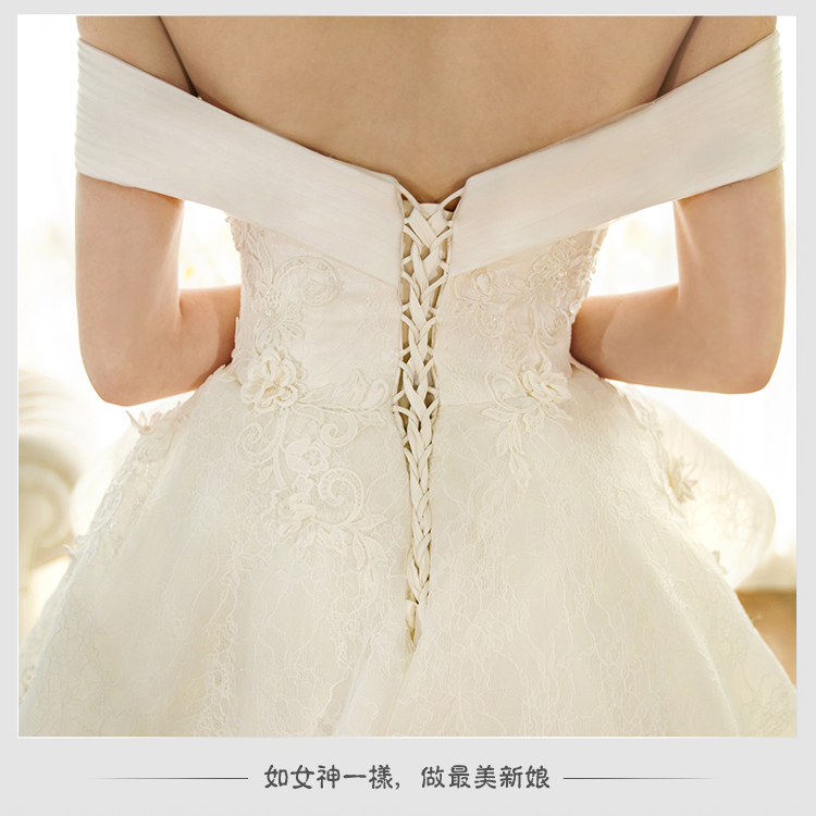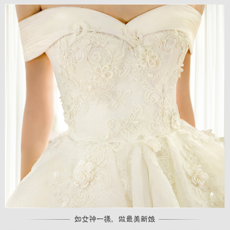 2016春款奢华一字肩抹胸长大拖尾婚纱