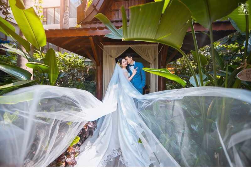 套餐包含:秀禾服一件,拖尾婚纱一件,敬酒服一件,晚礼服一件,赠伴娘服免费租赁。每月更新新款。