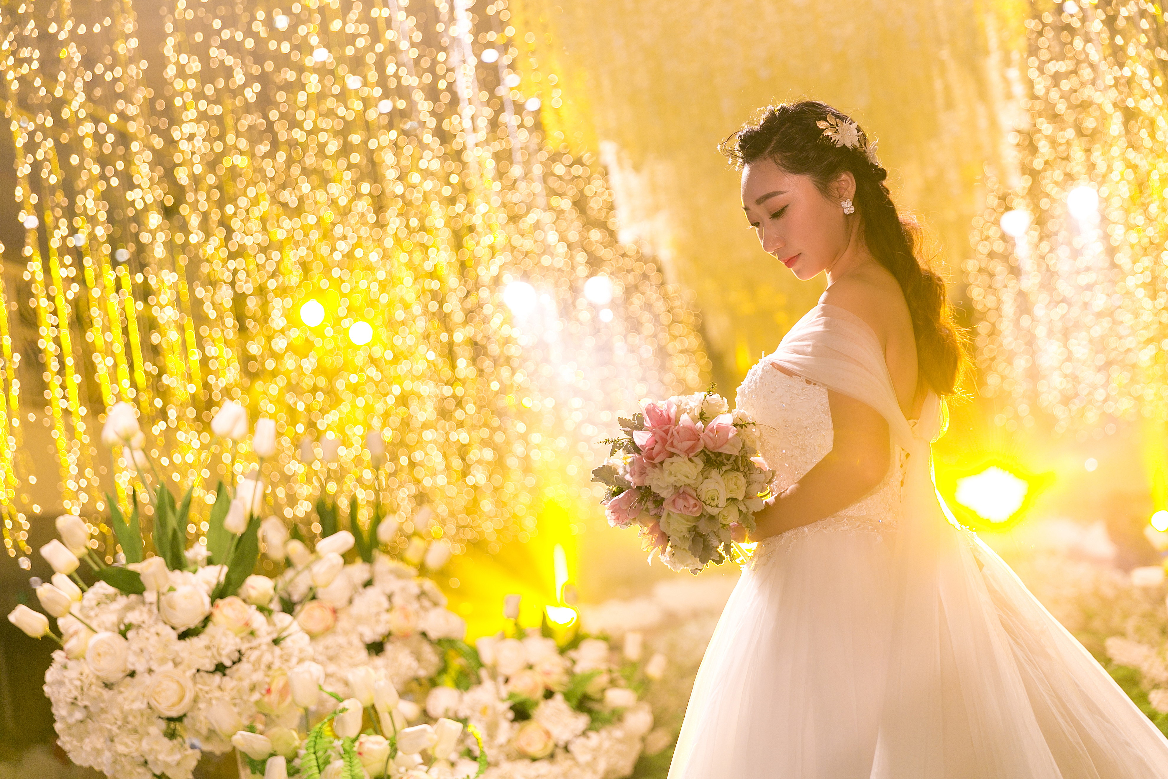 主舞台花艺造型及布景根据现场及婚礼风格设计