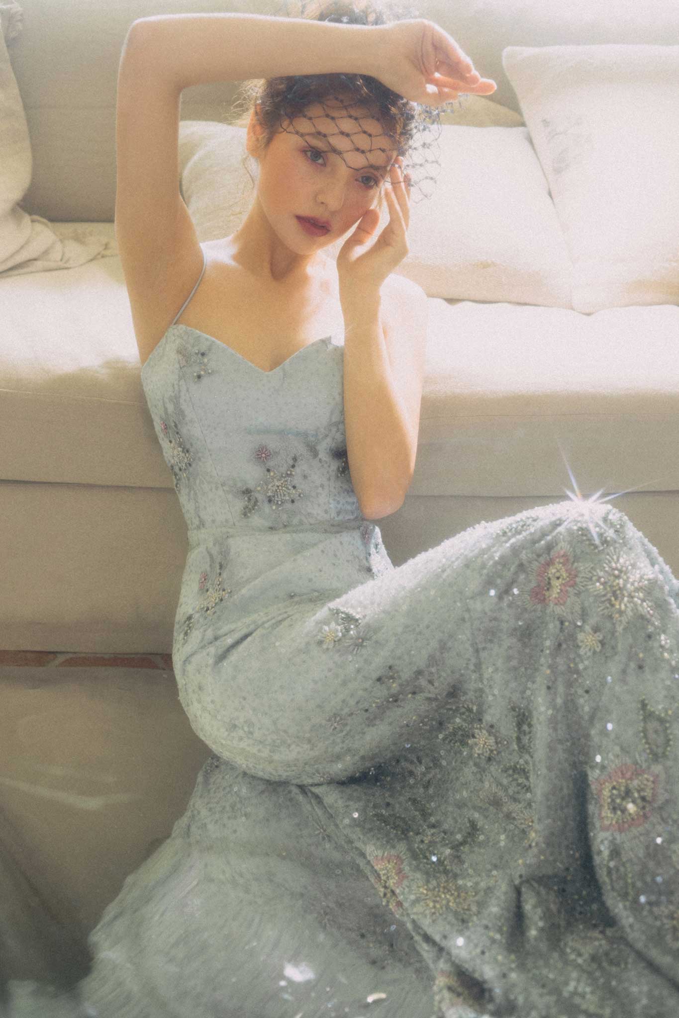 琉璃 重工复古水蓝色礼服