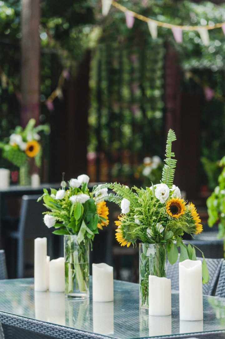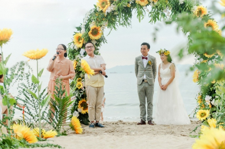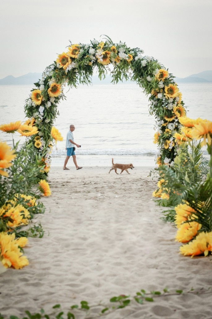 主题:向日葵【可根据喜好调整】 色系:黄色+绿色【可根据喜好调整】 布置区域:指引牌+求婚鲜花装饰+仪式区+仪式通道区 婚礼统筹: 前期沟通+场地测量+求婚筹备清单+流程策划设计+晚宴流程策划设计+仪式音乐策划设计+礼仪指导+专业求婚致辞参考 策划总监1名 专业设计师1名 执行督导1名 布景师3名 花艺师1名