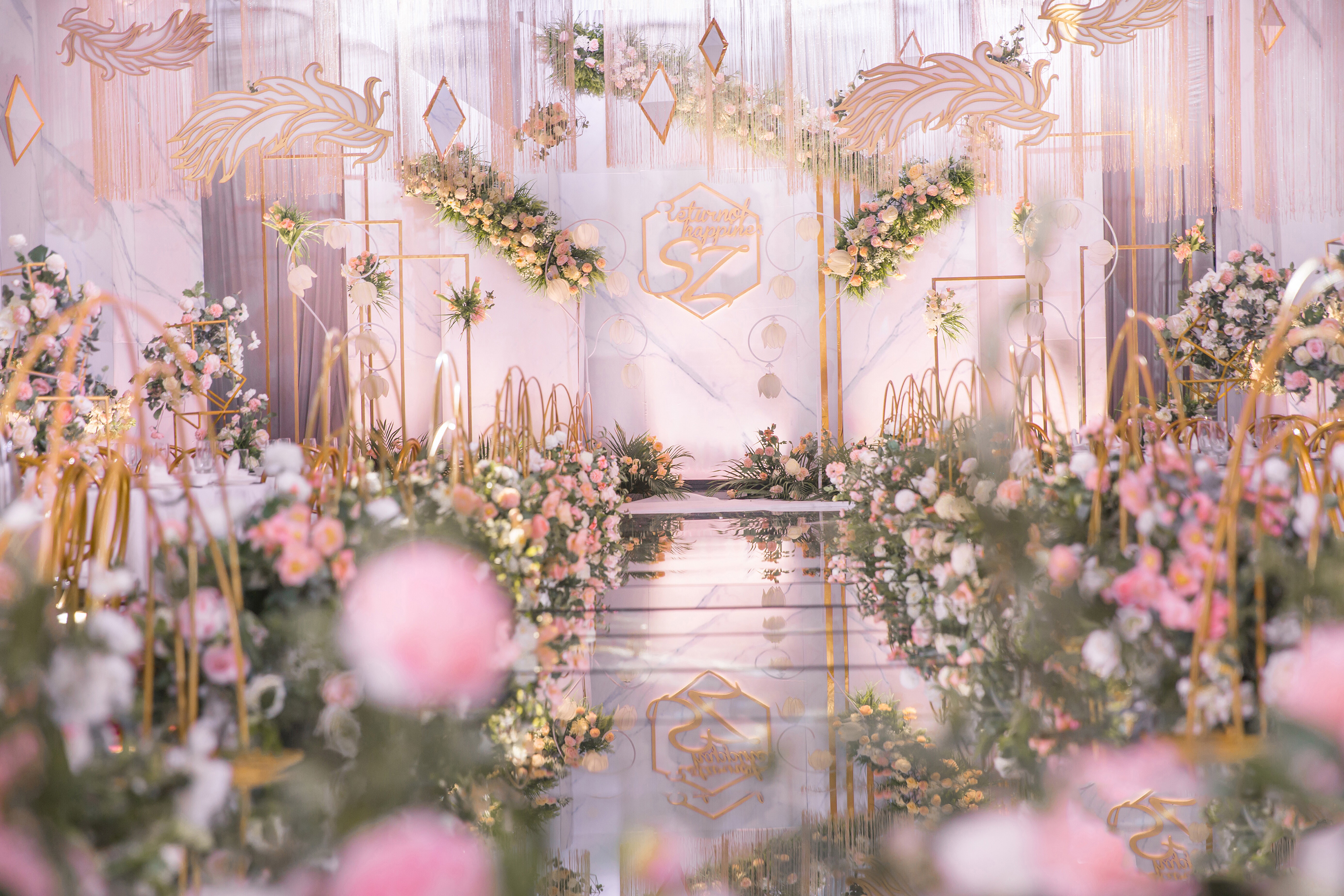 仪式区t台路引仿真花艺设计