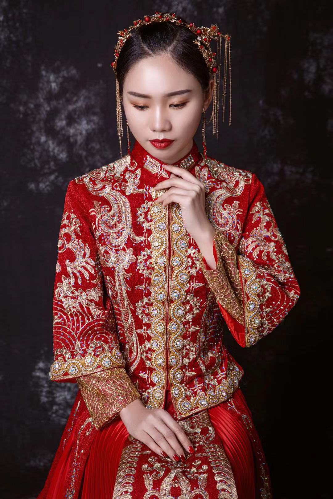 苏拉奢选3件套【豪华超大拖尾+重工中式+敬酒服】