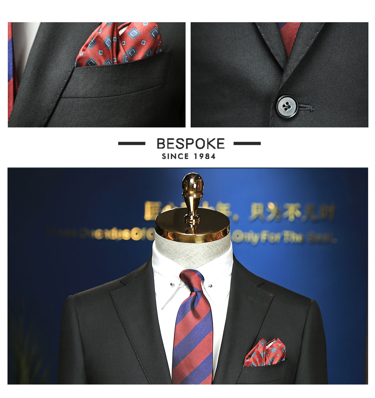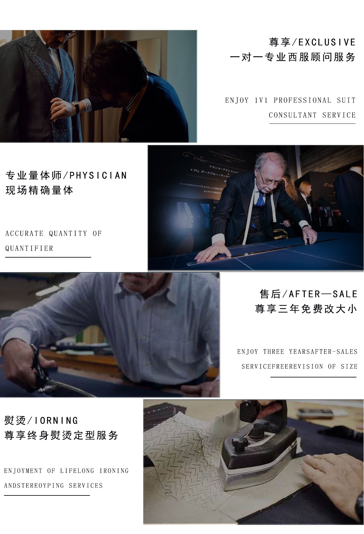 甄选面料:精仿全羊毛面料 制作工艺:量体师精确量体,高级定制手工工艺