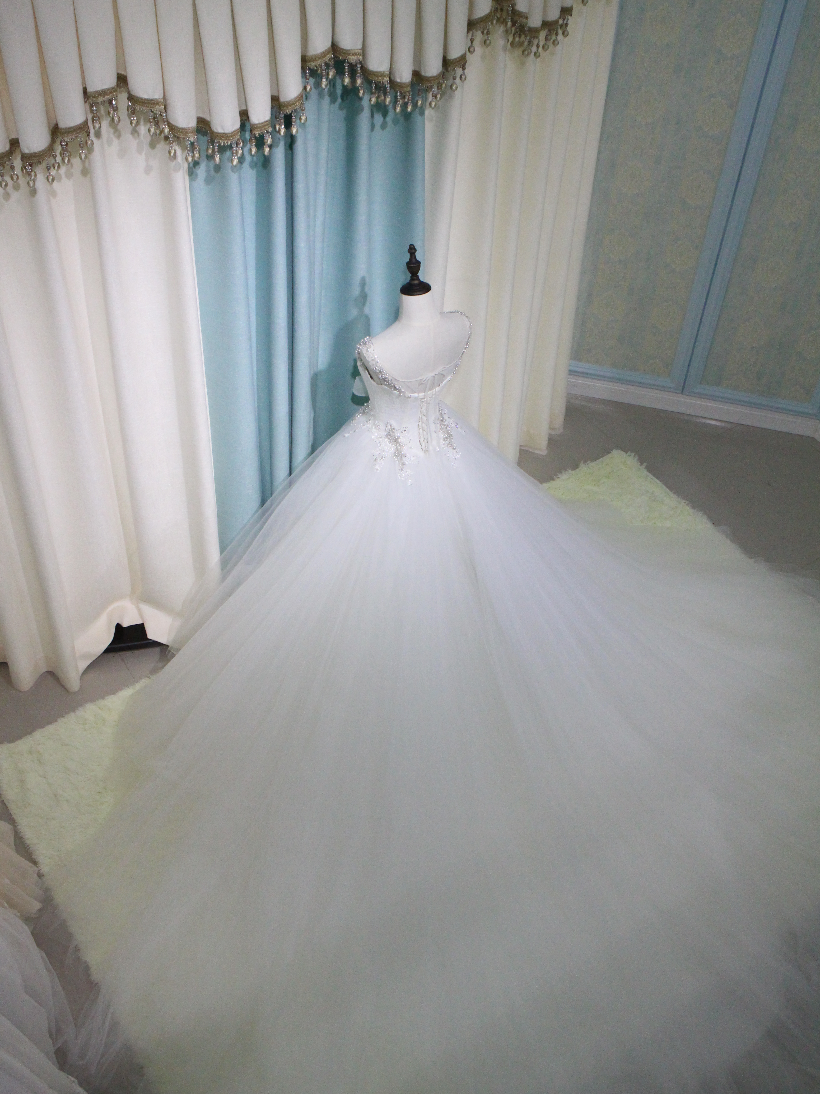 蓝色梦幻婚纱礼服七件套