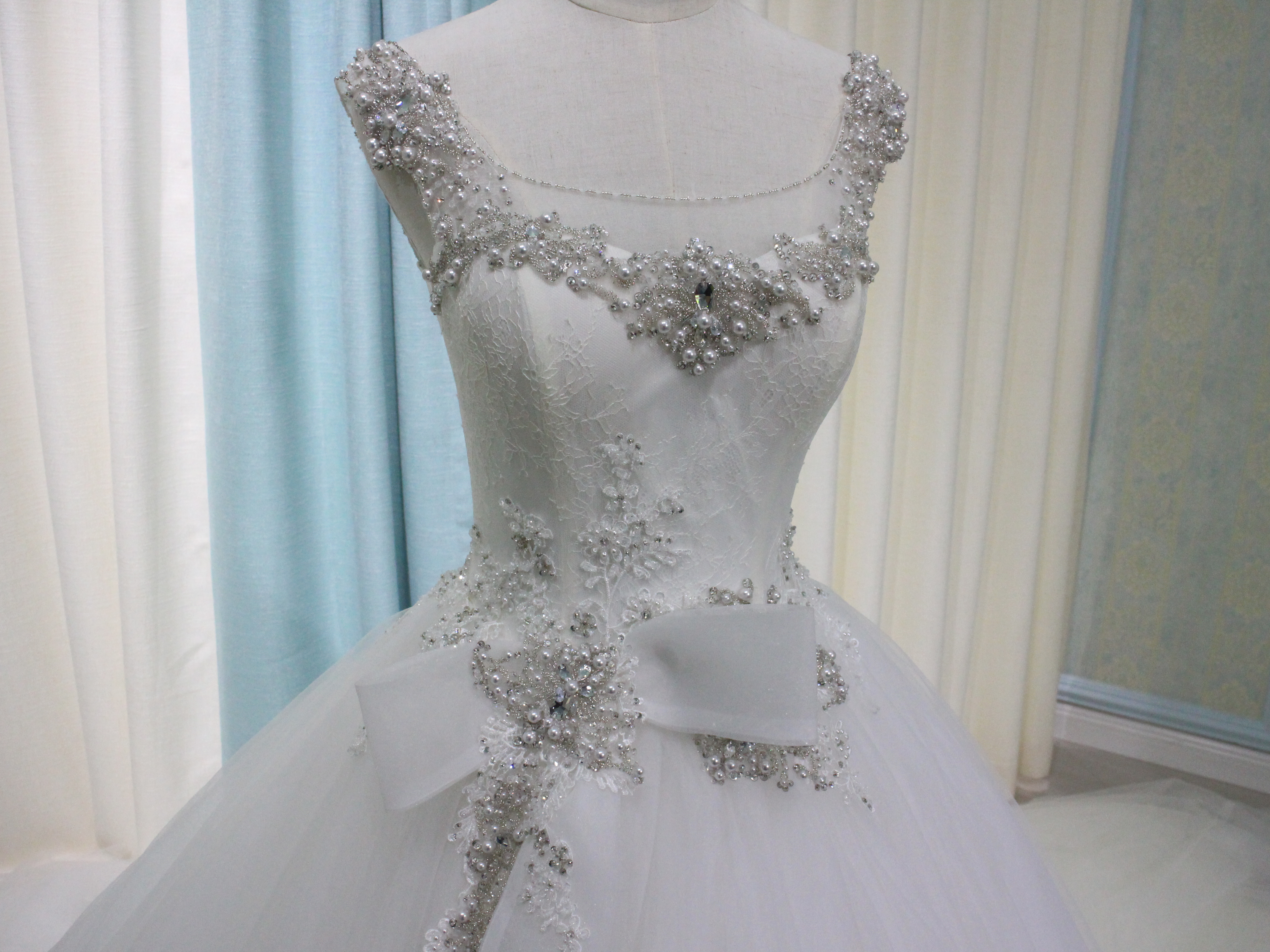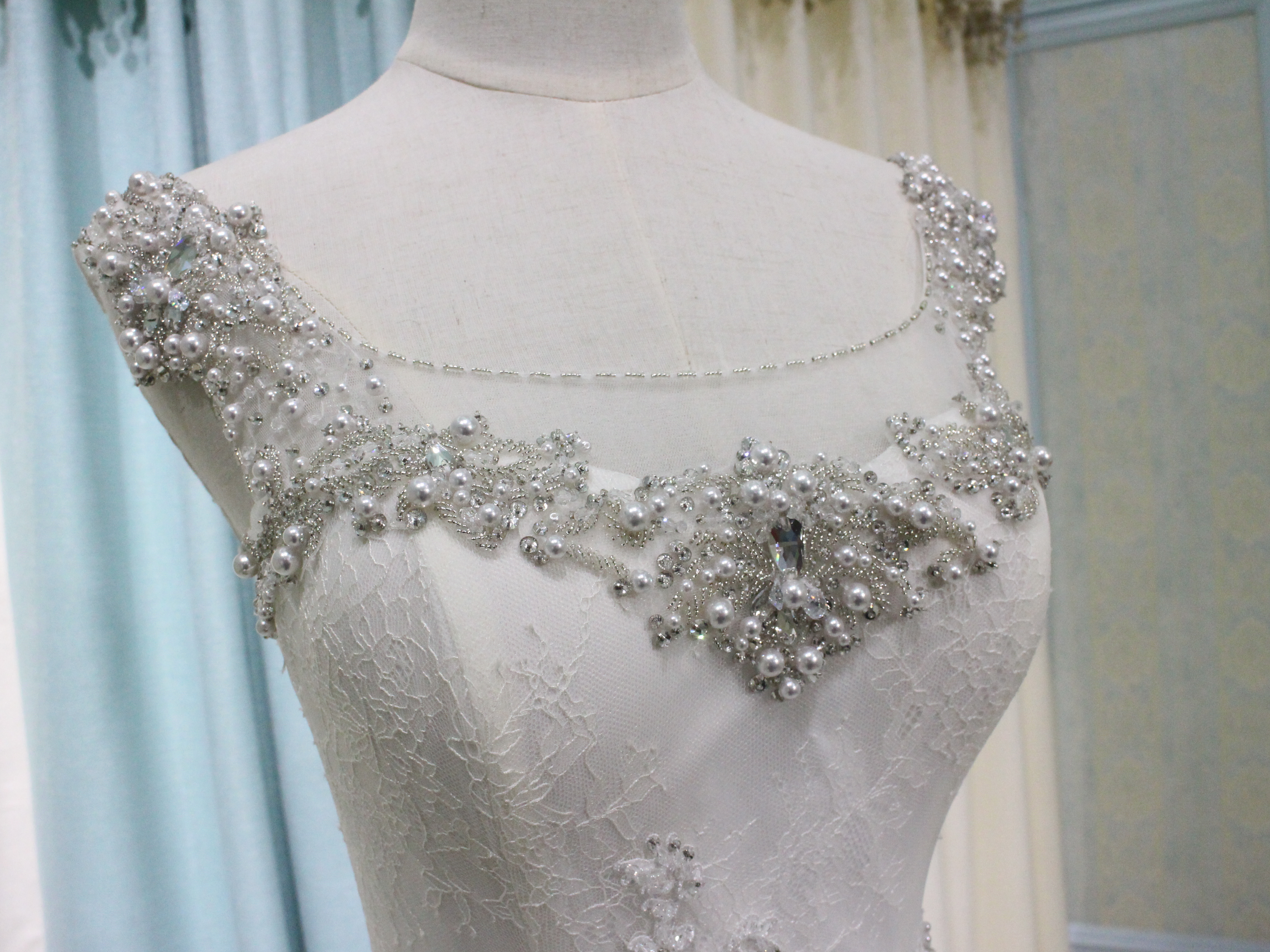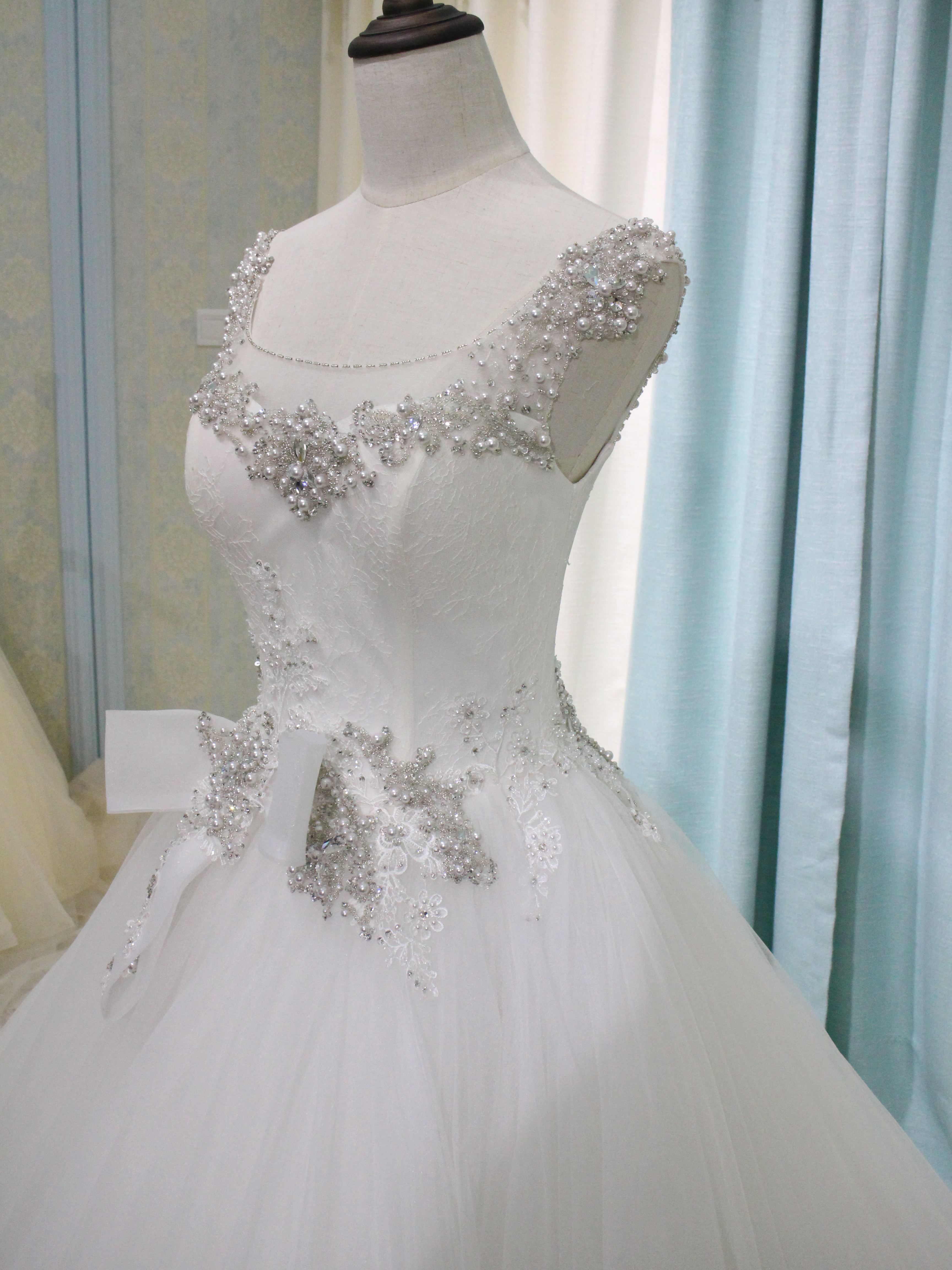 我们每件婚纱礼服,都是采用的国际A类做工! ★内置鱼骨 胸垫 紧身胸衣般的鱼骨结构,可帮助更好的塑形腰腹、挺拔姿! ★内置保险扣带 可以有效的防止身体行动时,出现抹胸下滑走光! ★纯手工高级珠绣 蕾丝或刺绣上必有纯手工的高级组合珠绣!时刻为您而闪耀! ★保障每位新娘的健康美丽 所有服装的面料和里料都经过严格检验和皮肤测试,呵护您娇嫩的肌肤。