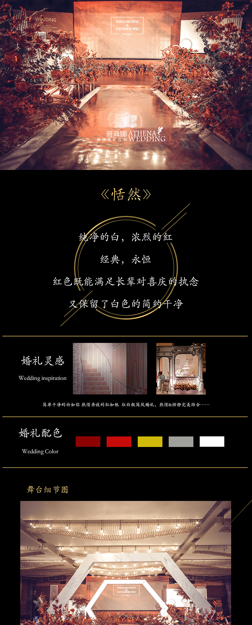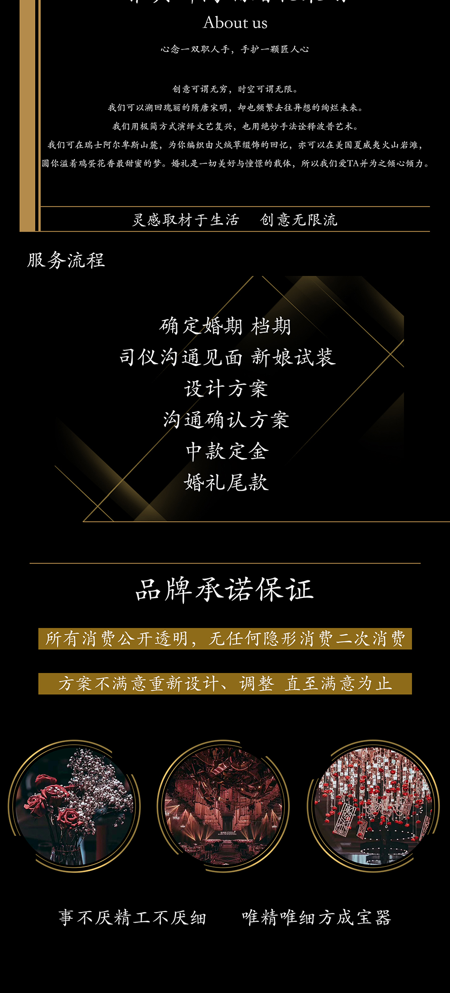 主舞台主题框架搭建 主舞台背景画面主题画面处理设计 主舞台软装定制道具装饰 主舞台花艺设计 (根据现场综合定制方案) 18mT台搭建 仪式区定制道具及软装飘顶 T台定制道具 T台俩侧定制铁艺道具