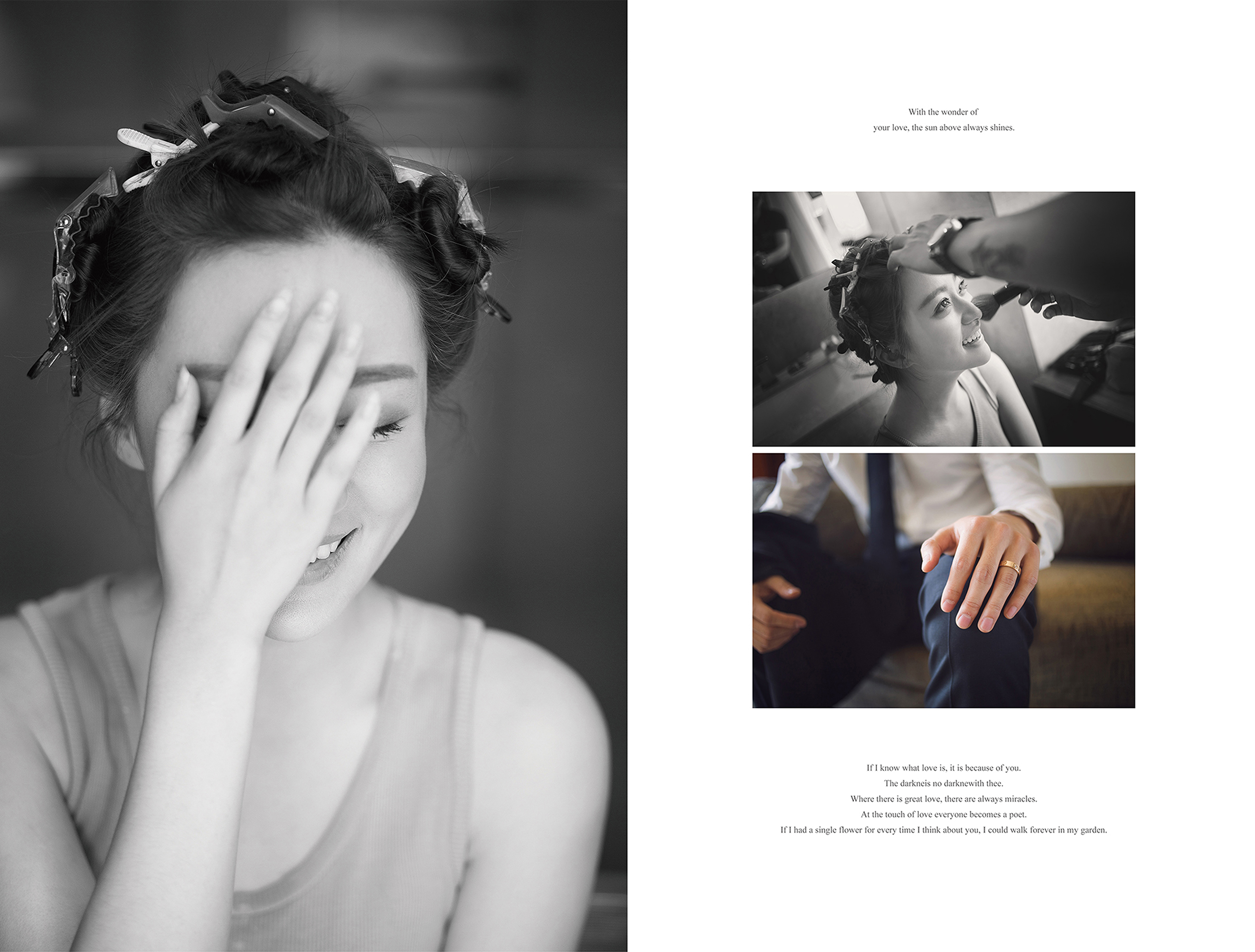 关于婚礼,对每一位准新人都是一辈子最期待地,也是最神圣的时刻。 对于每一场婚礼,我们都认真对待,同时享受这份幸福感。 我们热爱婚礼,因为享受感动,所以我们以此为职业。 用心定格您最动人的时刻。