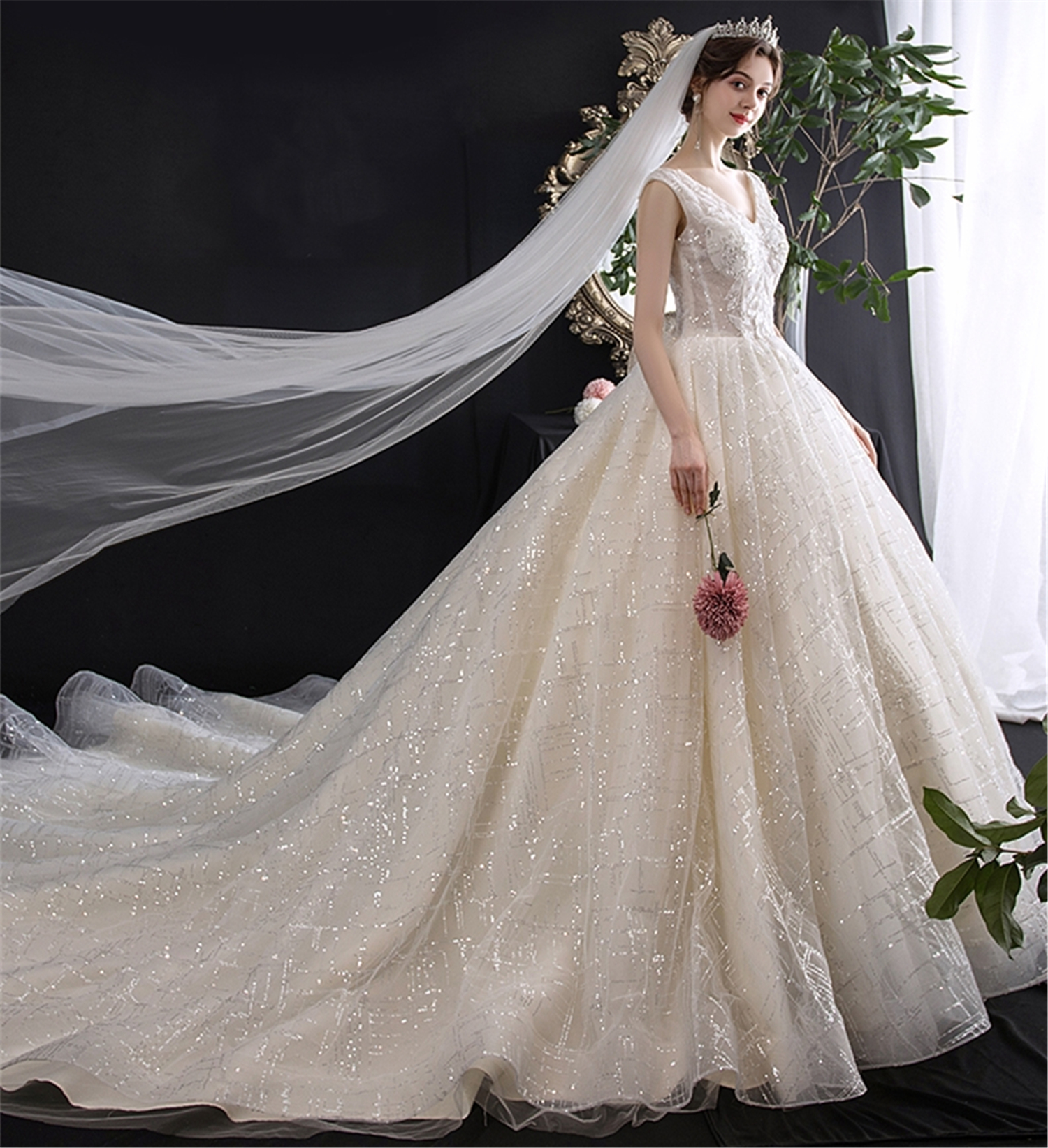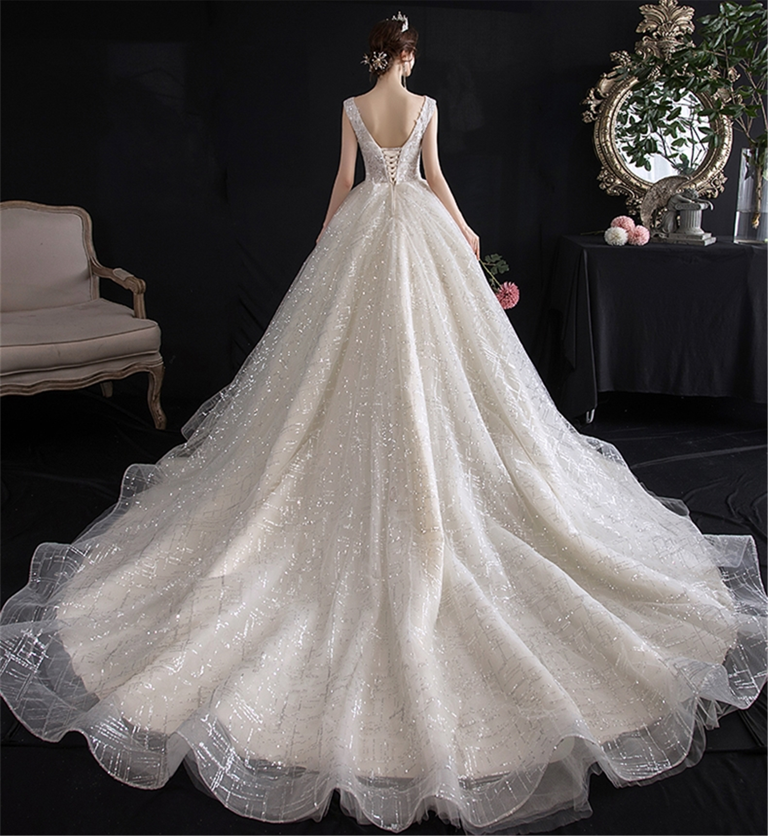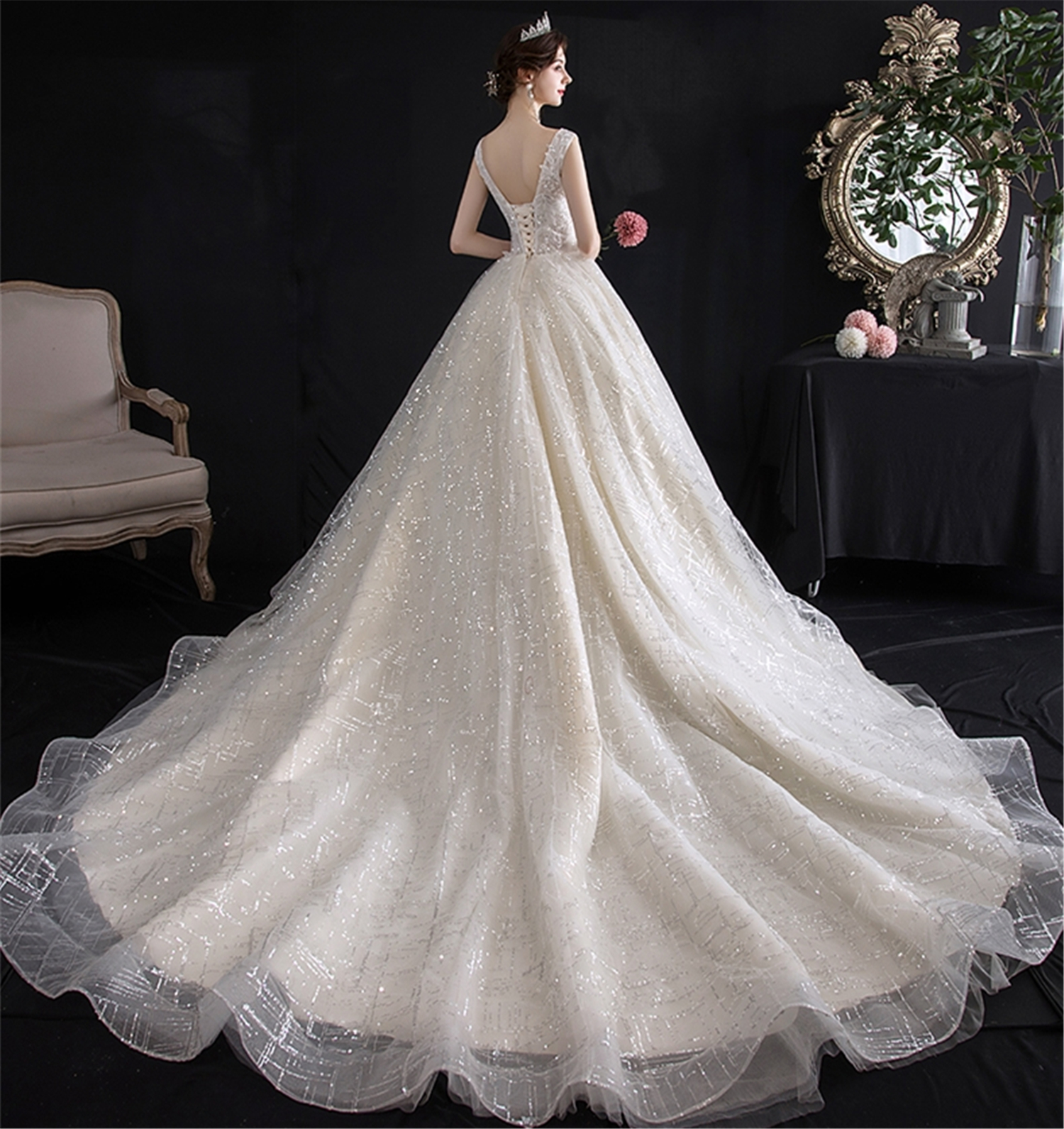 Miss wang单品婚纱 复古宫廷风拖尾主纱
