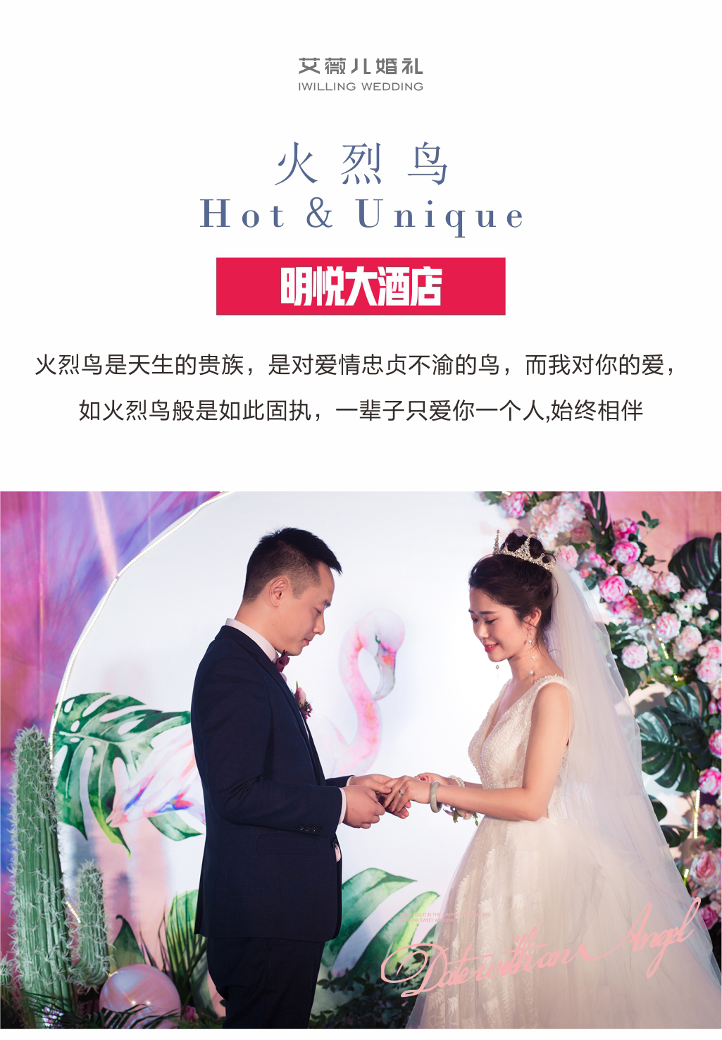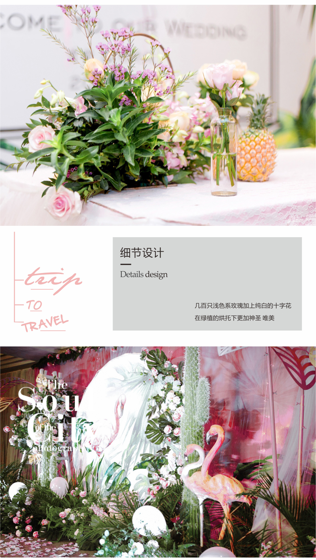 迎宾大海报 用于户外迎宾使用新人提供婚纱照图片 签到台花 在签到台放置的鲜花和仿真组合的花艺,增加签到台与婚礼主题的整体性,使签到台显得更加别致 签到台细节装饰 展现的主题根据婚礼的整体风格及色彩搭配,对签到台进行精美的细节装饰突出 签到台桌幔装饰 根据婚礼整体风格以色彩搭配 签到区指引水牌 根据婚礼整体风格,主题或行人提供的婚纱图片专属设计 主题签到帷幔背景 用于签到背景,采用不锈钢伸缩纱幔架搭建 精致多层次帷幔装饰背景 精美帷幔,采用不锈钢伸缩帷幔架搭建 合影区主题装饰道具 主题花艺造型,配合主题道具增添了浪漫的质感