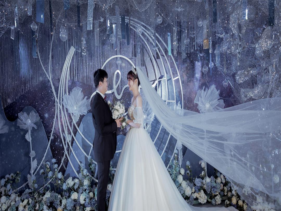 蓝色梦幻婚纱礼服七件套