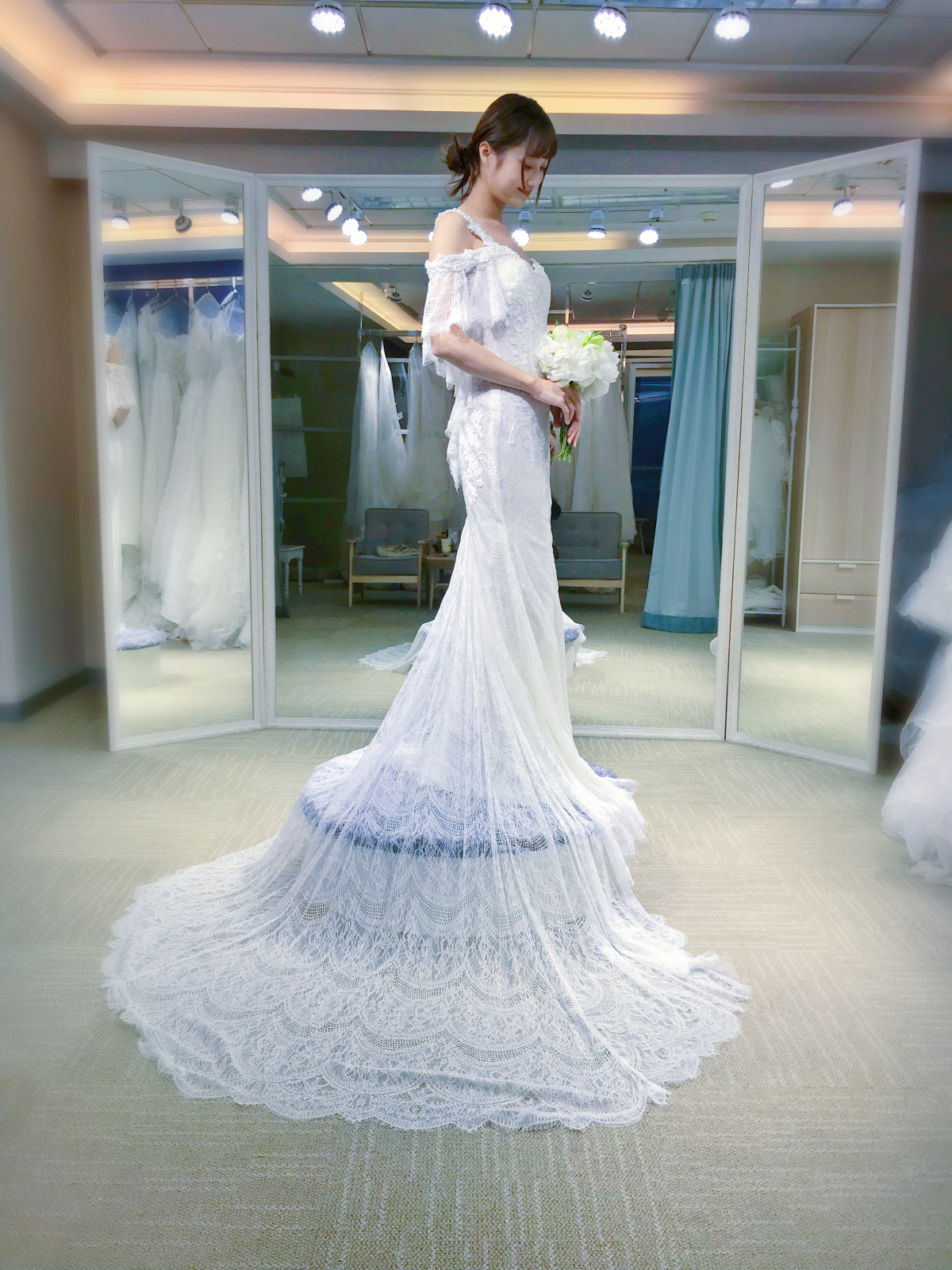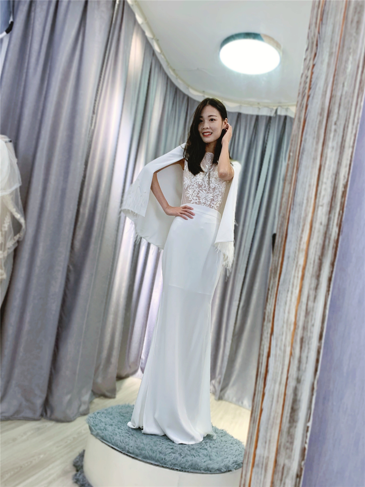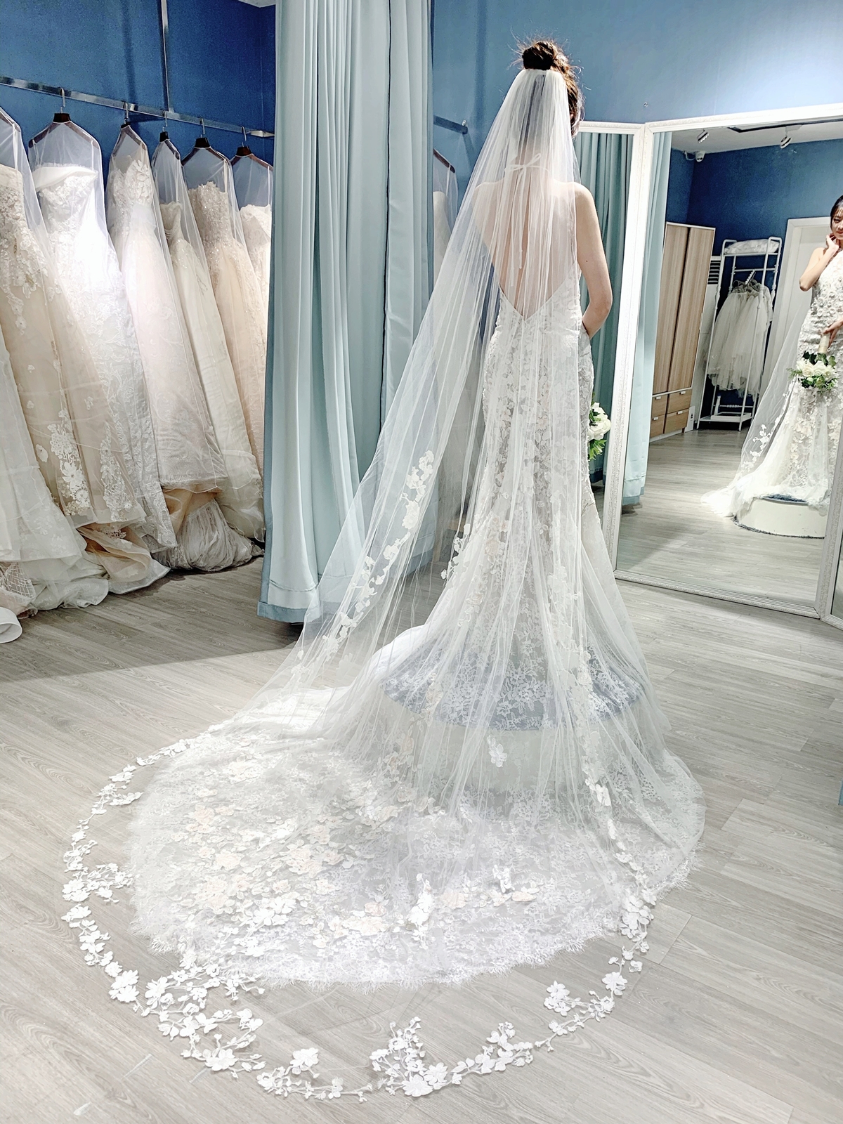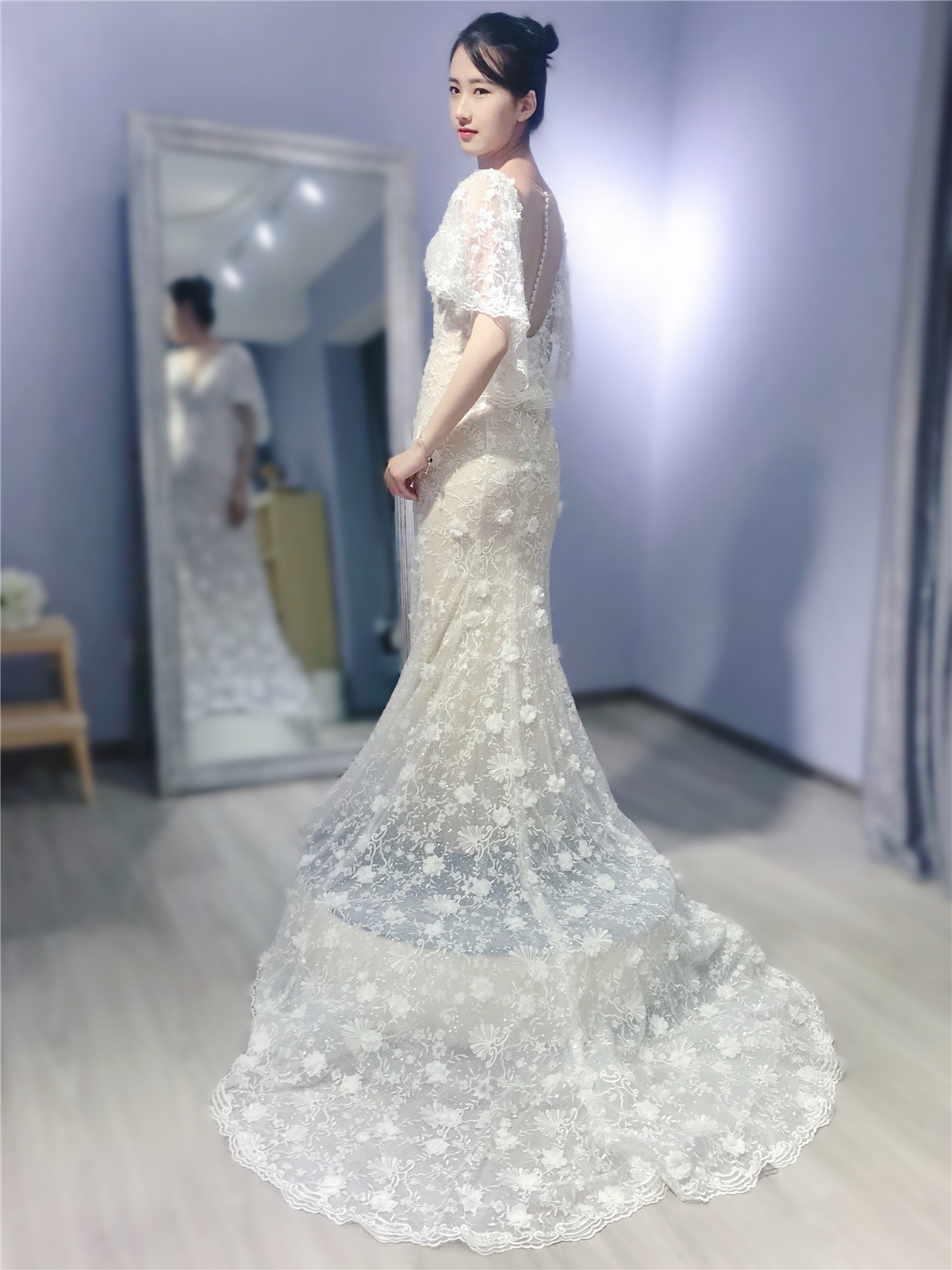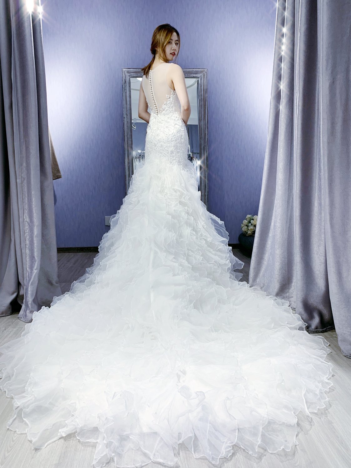 试纱请提前预约。我们将为每位新娘保留3小时的独立试衣间。
