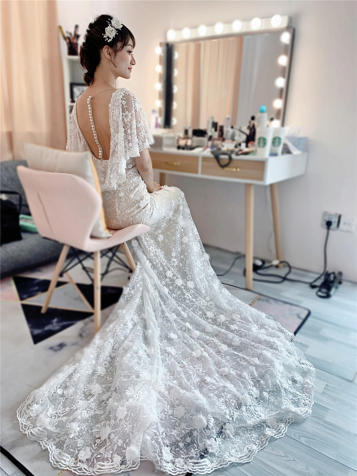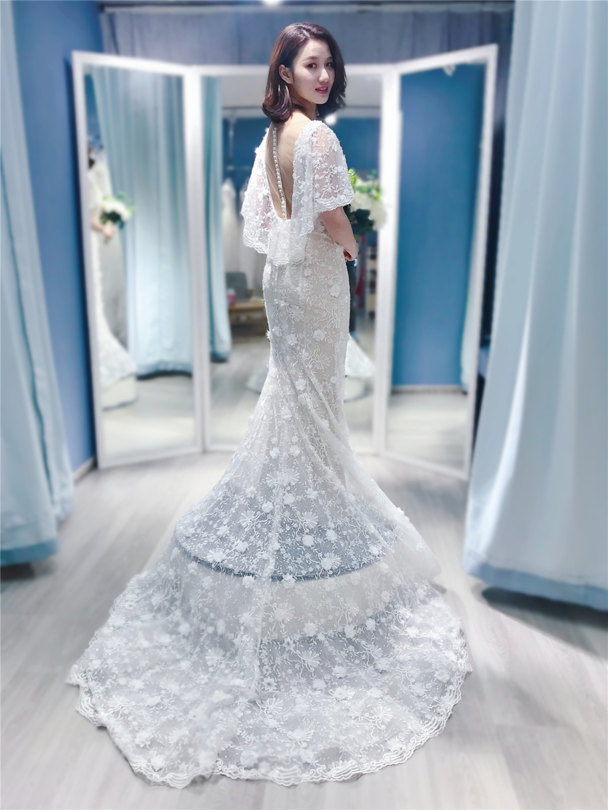 【凌波微步】鱼尾&A版系列四件套包含: 1.一件设计款鱼尾纱 2.一件设计师品牌出门纱 3.两件设计款晚礼服(晚礼服可换中式机绣款) 4.两件伴娘服 6.头纱&裙撑