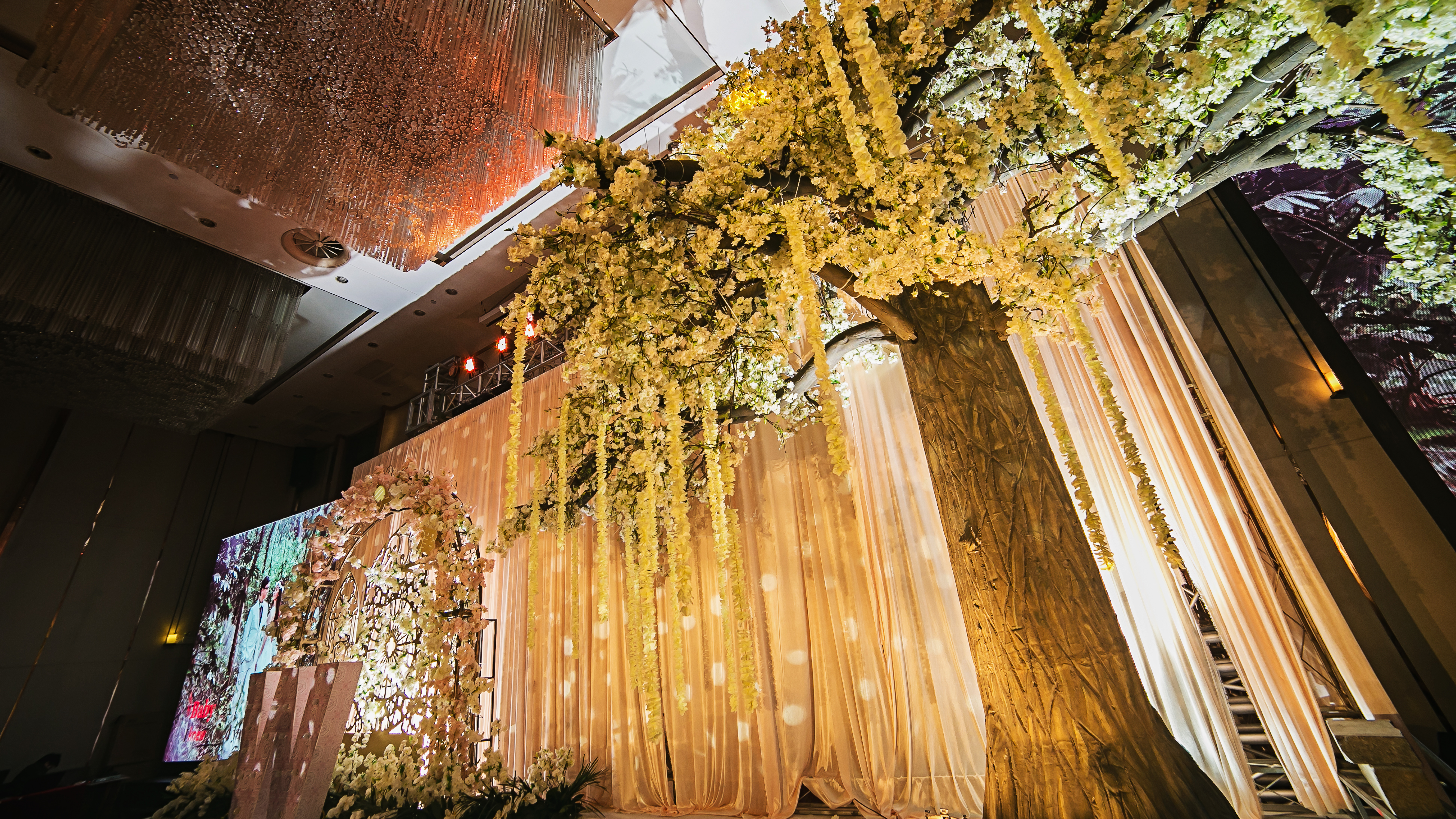 用作婚礼上半场仪式和舞台区渲染仪式效果,带来浪漫气氛,也用作婚礼仪式流程。