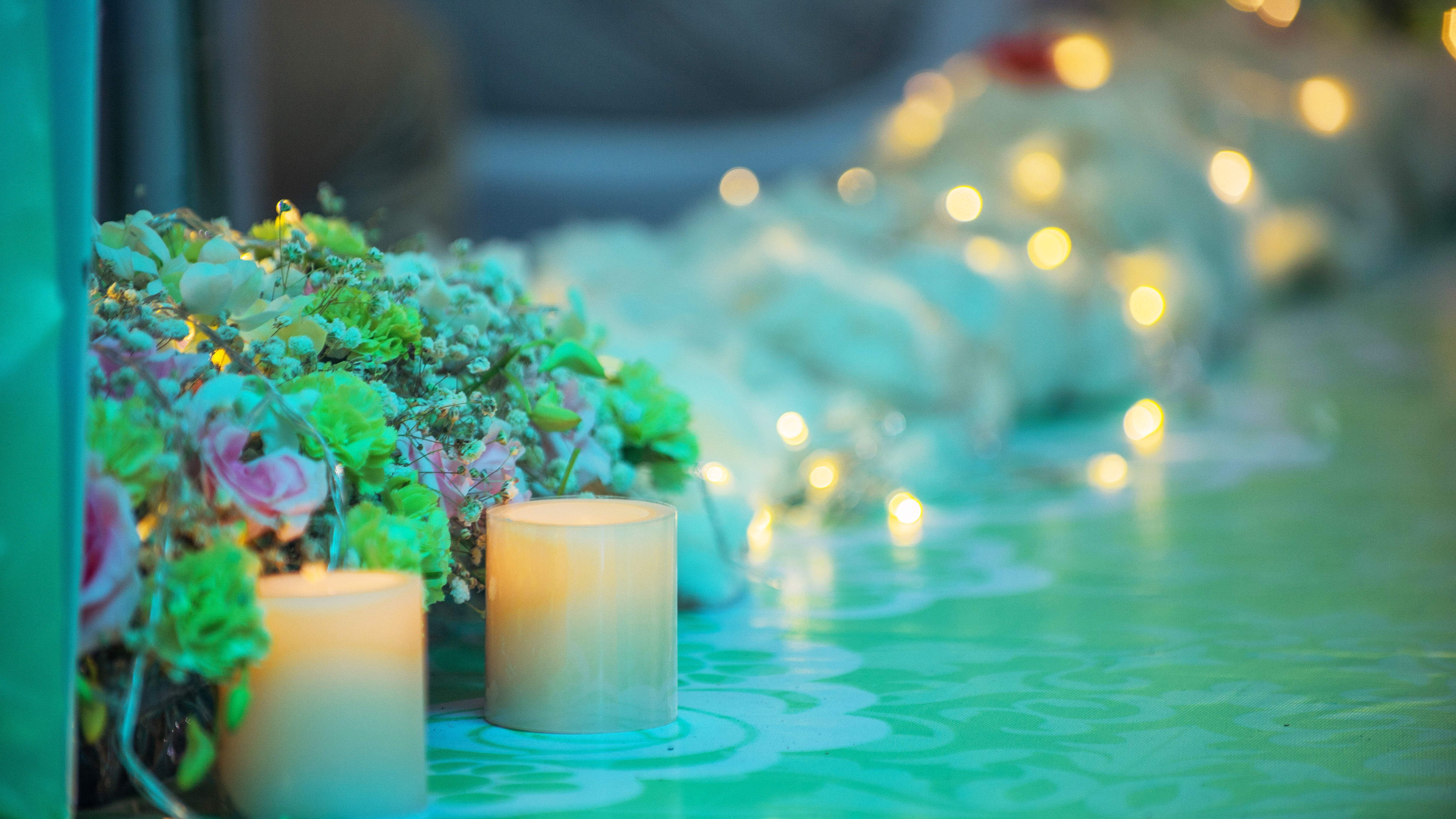 两排鲜花路引+灯串装饰