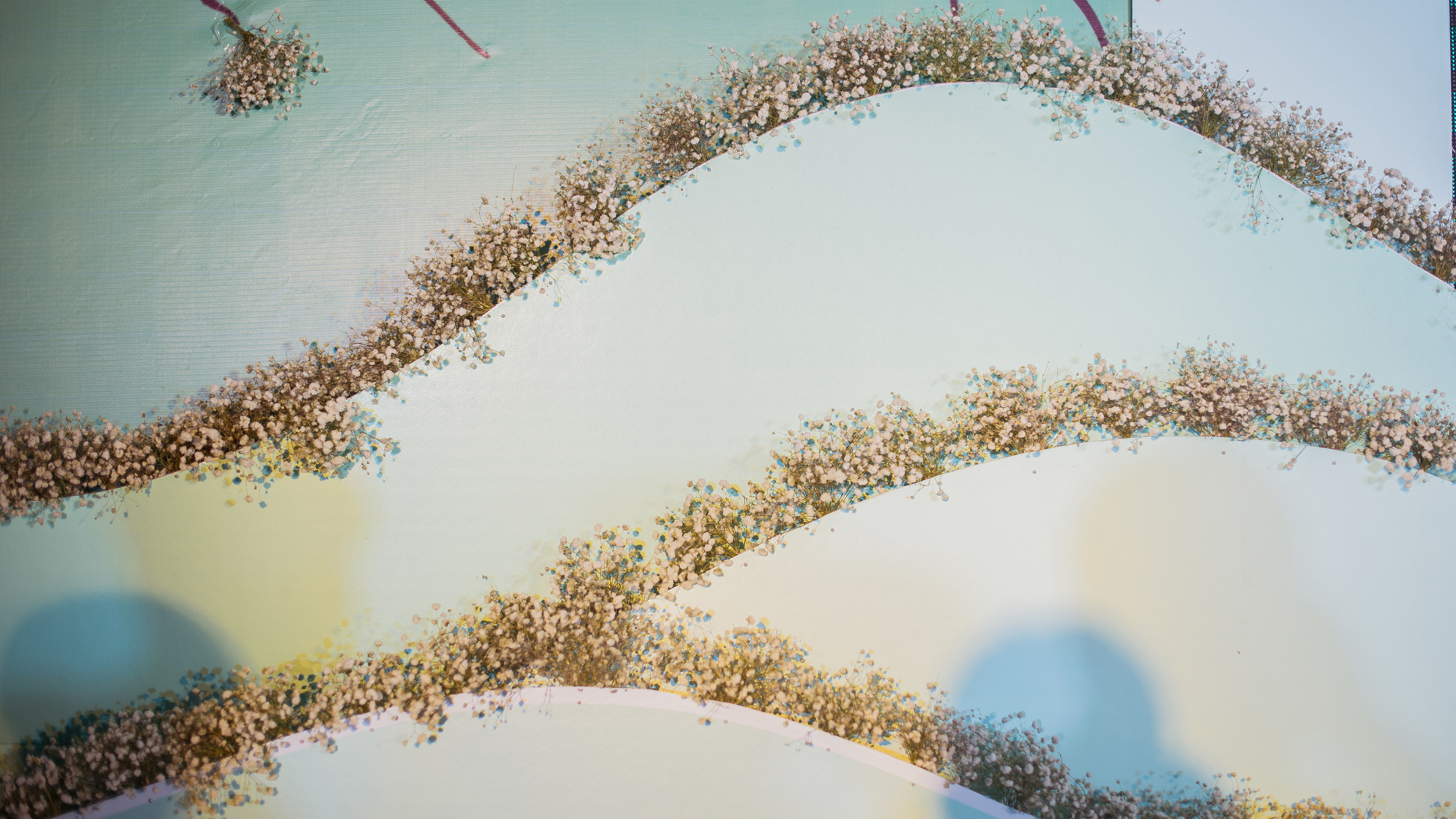 弧形KT板造型+鲜花装饰